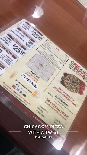 Read moreSo my fiance and I went to do some shopping in the area and decided to try some Chicago style pizza. We thought we were getting Chicago's Pizza. We ordered our pizza and bacon bread sticks and we sat down to wait for our food. We were then told this was not Chicago's Pizza but Chicago's Pizza with a twist. The twist is that this is really Indian style pizza under Chicago's Pizza's name. We were so VERY disappointed with the honesty of this place regarding the name of the business itself. We were not satisfied with the pizza at all. Our pizza had way too many toppings. We ordered a pepperoni, bacon, green peppers and onion pizza. We got a pizza with that had that stuff along with sausage, pork, salami, olives and purple onions. It was not close to being good. It was beyond messy. We couldn't even taste the pizza sauce bc of all of the toppings it had on it. The bread sticks with bacon were good. They did have alot of cheese on the breadsticks but not very much on the pizza. The fountain coke was good too. We will not be back and we will be more mindful of restaurants and the business name it is advertised under after...