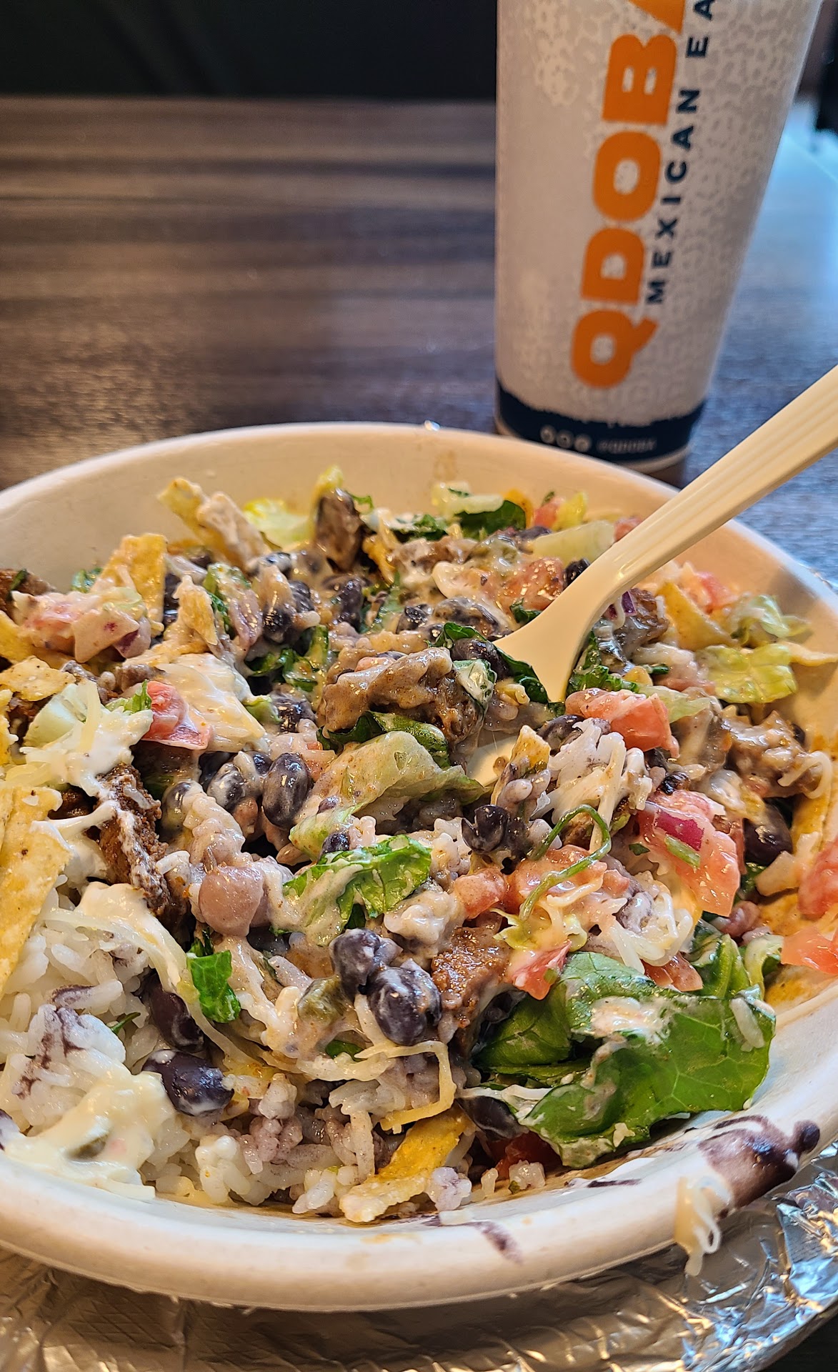 Read moreDrink machine was broken and flooded all over the floor near the cash register. Only 1 person making all the food and checking people out. And of course when it's my turn to order, some lady who already got her food a while ago cuts to the very front to complain that her receipt is wrong. The manager comes out and says there's nothing she can do but the lady keeps going on holding up about 8 of us behind her. I kindly asked the lady if I could check out real quick since I was on my lunch break and she responded that if she let's me go then she'll have to let everyone go. And that "we all have problems", and went on about her son going to medical school. This lady had mental problems and maybe her son was going to medical school to do brain surgery on her. Anyways I had to keep waiting until the manager finally shooed her away. I'll be taking my Qdoba business to Avon since it's the same distance from my job and less mess...