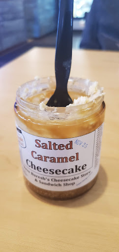 The cheesecake is delicious comes in a variety of flavors our family has had Vanilla, Birthday Cake, Cookies & Cream, Dark Chocolate, Turtle, Espresso, Peanut Butter Chocolate, Blueberry, Raspberry, Strawberry and my favorite Key Lime. It comes in 8 or 4oz mason jars or you can buy a whole cheesecake to take home. If you bring the mason jars back they give you get a discount.