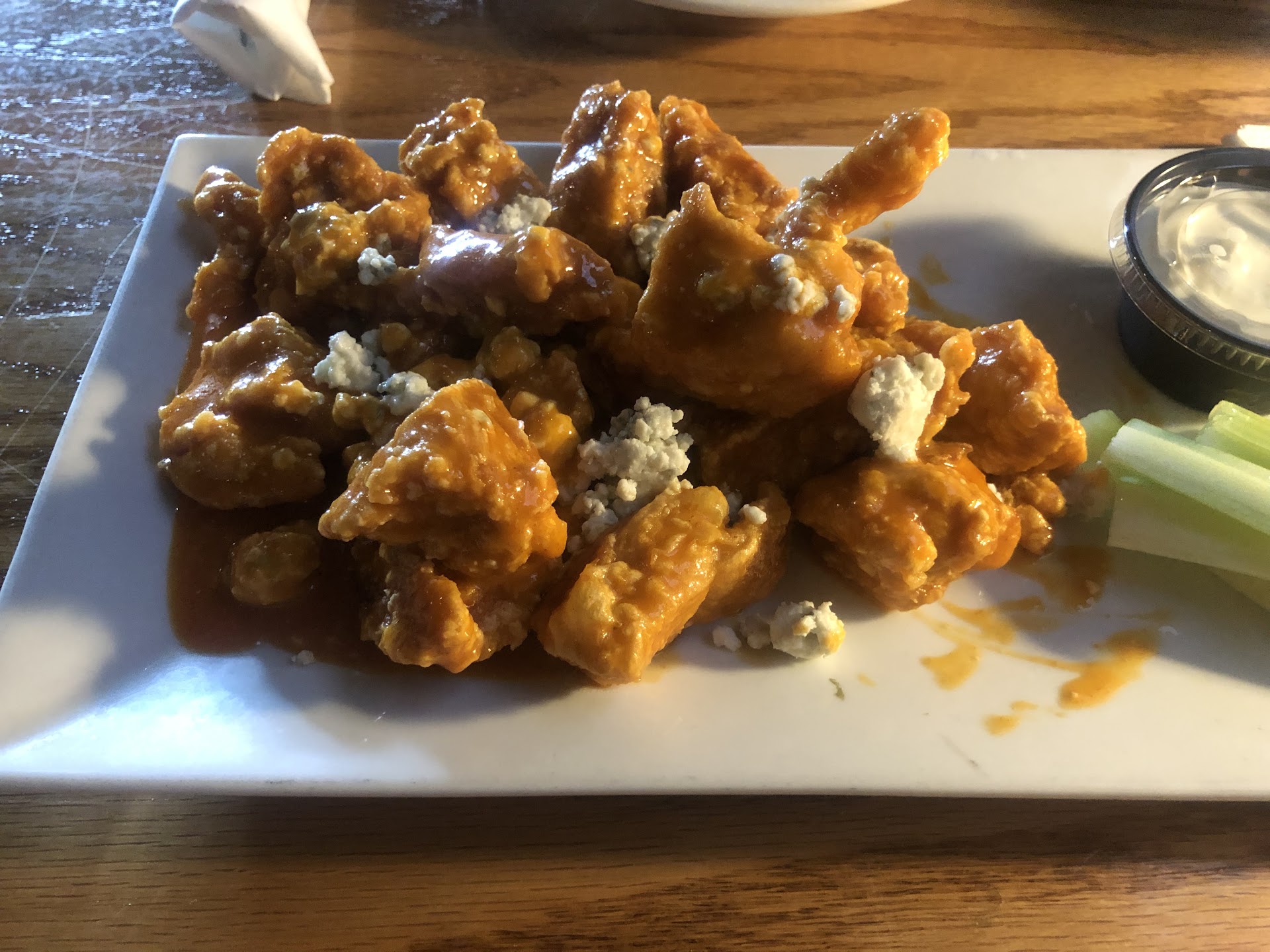 We had two orders of bites, two lemon garlic chicken dinners (much too salty- used garlic salt maybe and chicken had no color - looked boiled or poached, pasta was still a bit crunchy), chicken tenders (were ok), a chicken salad (looked good), a cheese steak, a crab cake sandwich and two burgers One order of chicken bites was WAY over cooked, dry and hard (sauce was tasty, though).