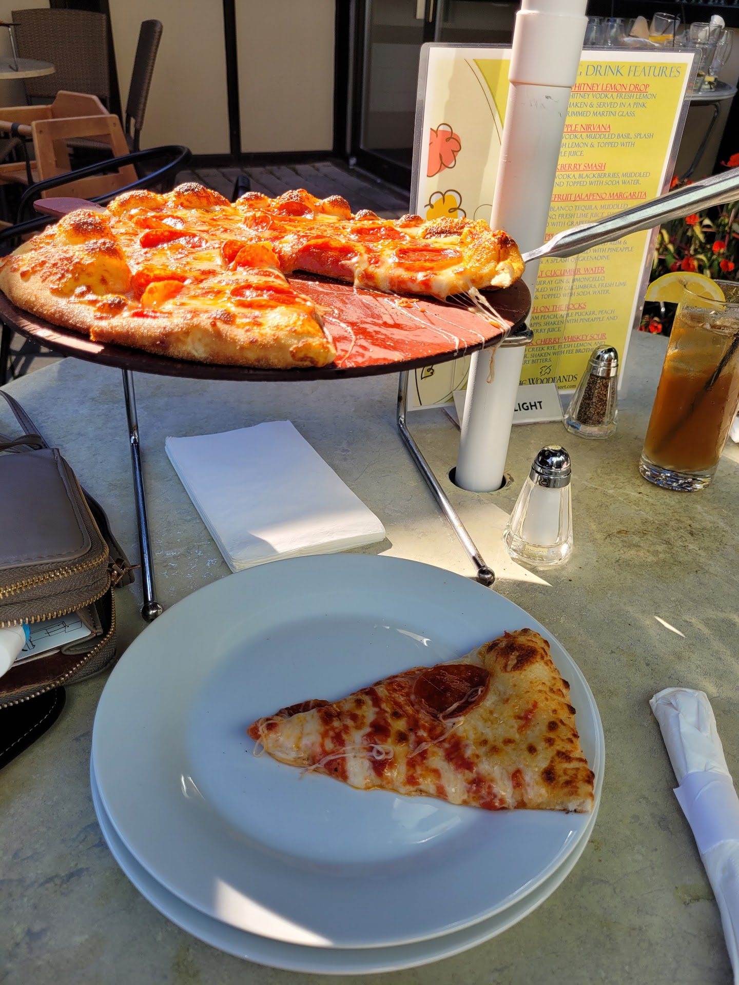 Pizza was delicious and fresh. The cheese was stringy when you went to remove a slice, crust was a bit flimsy but flavorful, and the cheese blend was excellent. Our waitress was nice but forgetful- left an entree sitting on the counter for well over 20 minutes where we could see it, and then fibbed about why it took so long. It was a decent burger, but somewhat cold by the time we got it. I have to dock a star...
