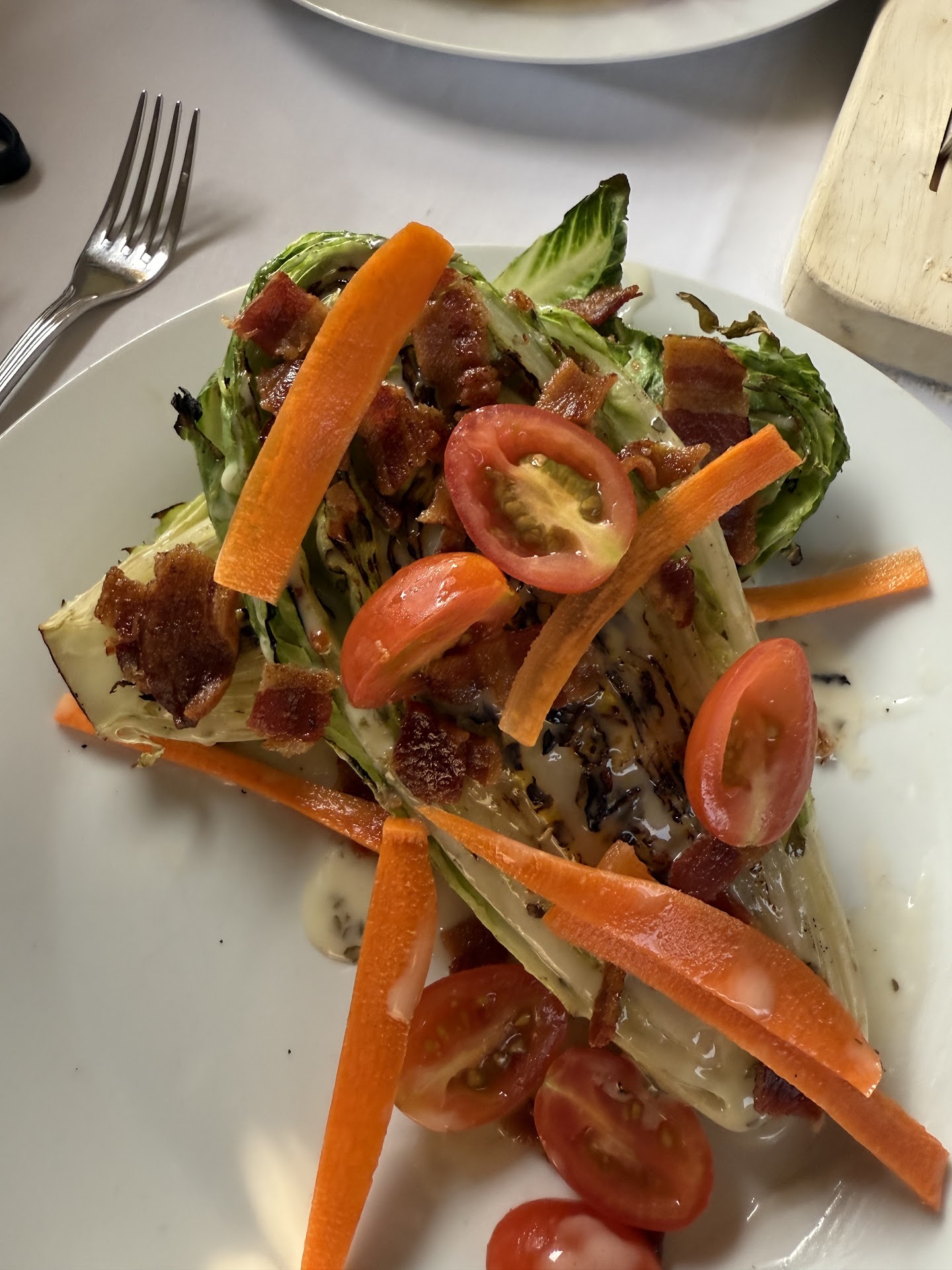 We arrived on time for our 6:30 p.m. reservation on a Saturday, and were mildly surprised that not many tables were occupied. The host warmly greeted us immediately, and guided us to our seat, lit by a lamp placed squarely in the middle of the table. After ordering our wine, our delightful server took our orders before returning with several rolls that came directly from the oven.