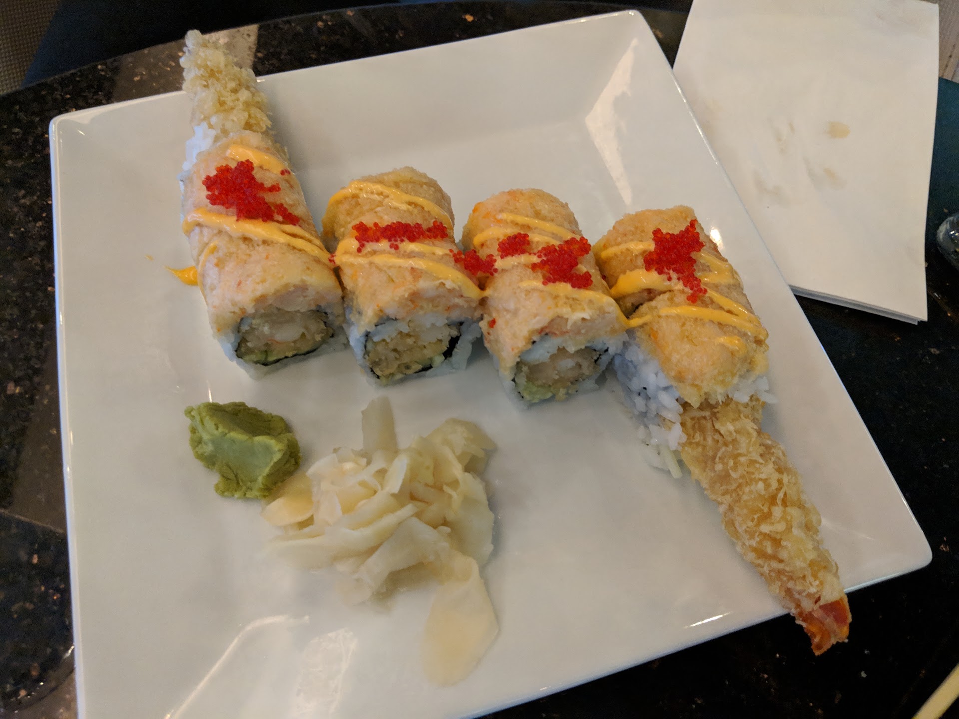 Ā Ā Ā Read moreCame here last night with my husband before seeing the Red Not Chili Peppers and let me tell you... The food was FANTASTIC!! We had 2 sushi rolls. One was sweet potato and I can't remember the name of the other one but it was raw salmon and avocado. We each had their garden salad, broth and I ordered a chicken hibachi... We finished with a Japanese dessert ... It was a mango and strawberry dough filled with ice cream and it was DELISH!