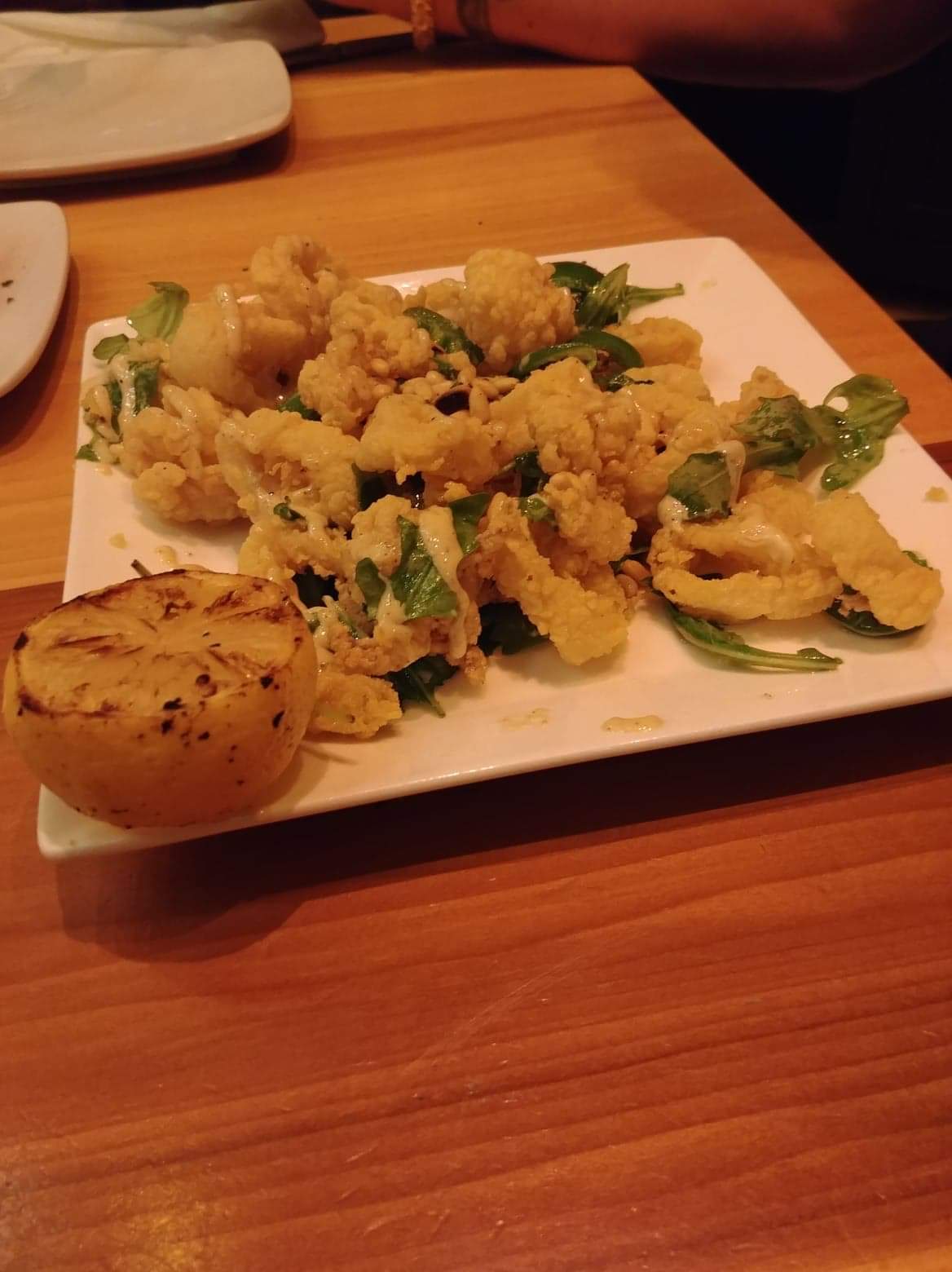 Each couple ordered an appetizer; one calamari and one spring roll. Our friends seemed to enjoy their spring rolls and we absolutely loved our calamari. The calamari was cooked perfectly and not rubbery. The breading was sufficient. We really enjoyed the jalapeno aioli sauce, it was just the "icing on the cake" that made this an excellent dish.