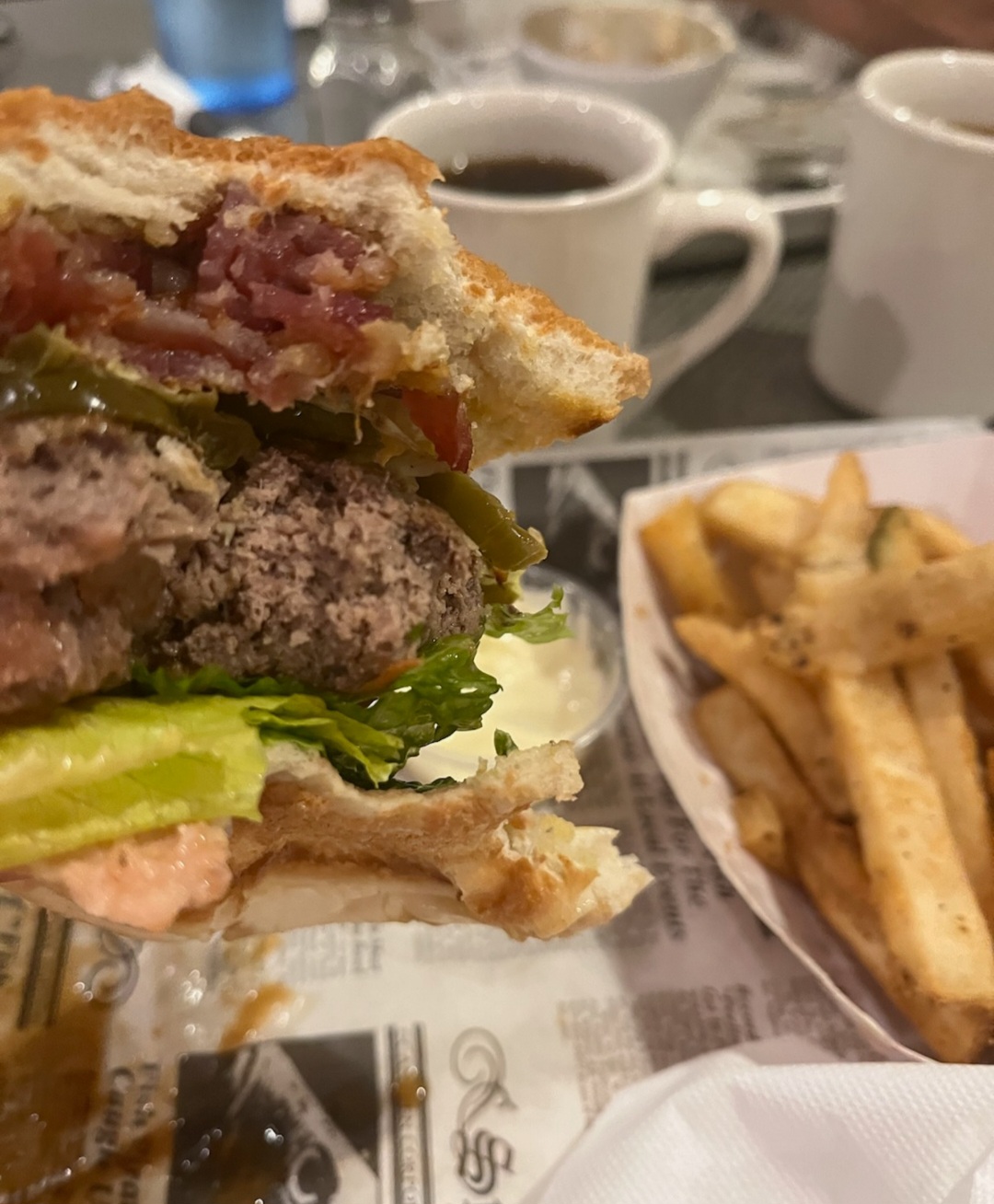 I was a bit apprehensive because several reviews mentioned caving ceiling tiles and peeling floors. I warned my friends, and no one minded. In actuality, the ceilings and floors in the Anthracite Room that are “falling apart” are not an issue at all. It is hardly noticeable unless you are sitting directly on/under them and even then, it shouldn’t interfere with your experience. It’s a haven compared to the average public high school. The “disgusting tablecloths” are just a bit old, and theyre leather, which is why they may be a bit tattered, but that shouldn’t be an issue unless you are a weirdo who likes to eat directly off of the table at a restaurant.