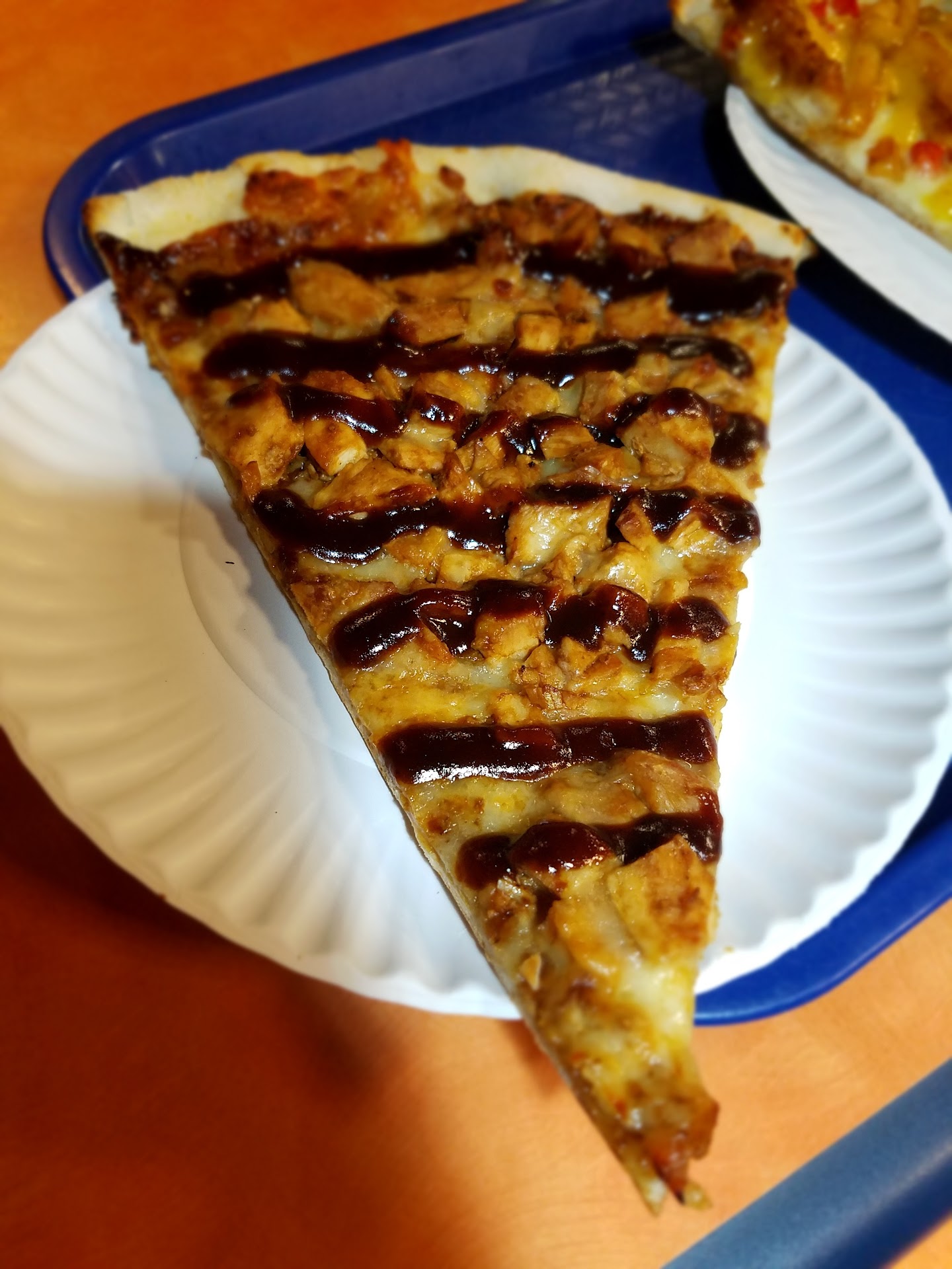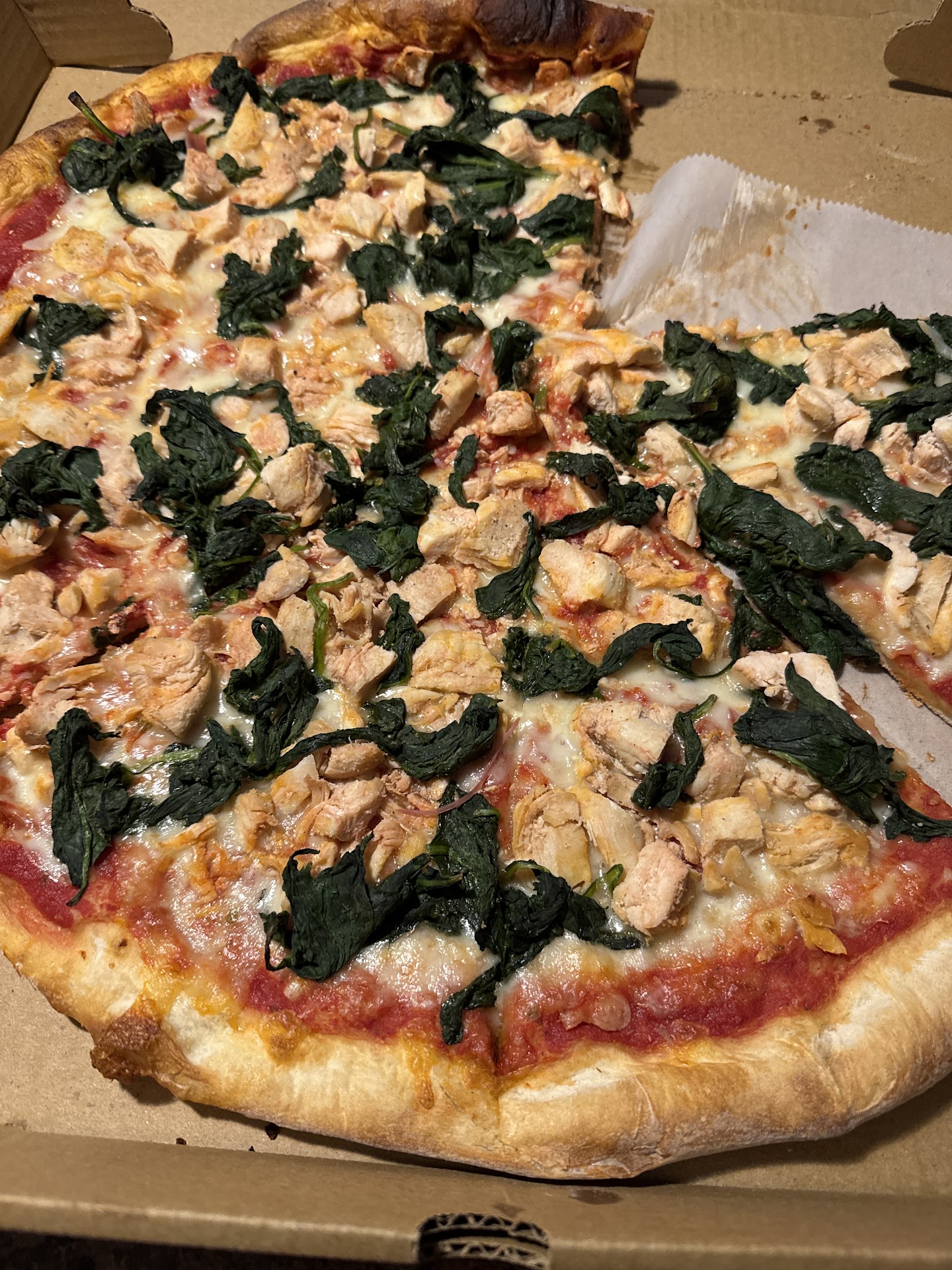 also, as the pizza was jumbo size it clearly did not fit in the box so instead of putting it into two boxes they simply chose to fold a few slices horizontally and mutilate them.