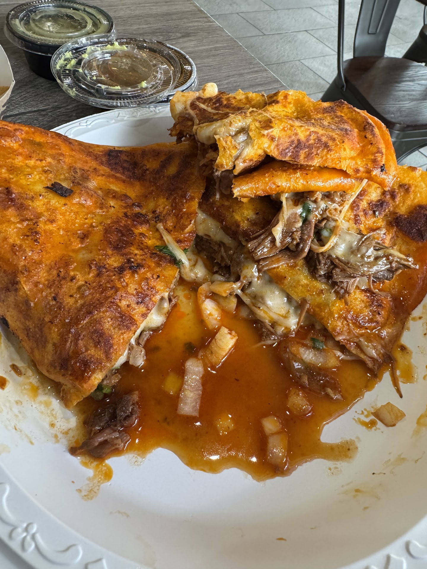 Would recommend frying the quesadilla longer so it’s not a soggy mush… and seasoning the meat more…I left most of what you see in the photo…almost $25 spent…don’t think I’ll come back.