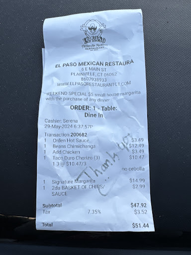 If you're tired of tex-mex chains and want to experience real Mexican cuisine in Connecticut, El Paso is your spot. The kind of place that makes you feel like a regular after just one visit. Highly recommend to anyone looking for authentic flavors and that homestyle cooking you can't find just anywhere.