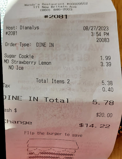 The woman returns a minute later with nickles and dimes to refund me. I said you charged me $2 for the cookie. She says hold on and goes back in. Then she tells me to drive forward so I did. Then a guy who I think was a manager came out and handed me the receipt and a dollar, and quickly walks away. Thus, I was cheated out of tax on the cookie that I almost paid for if I didn't pay attention.