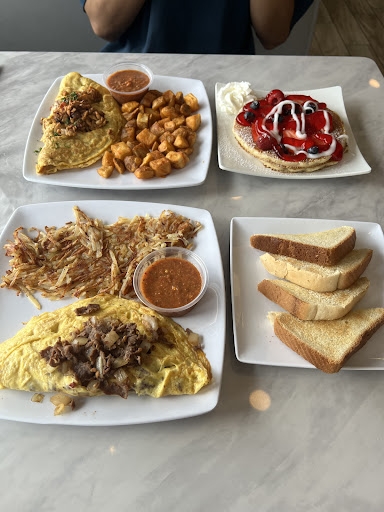 Read moreLove love loved the experience!! Warm and welcoming with a comfy enegry to it. Vibes were vibing. We ordered pretty quick. My husband and I both ordered a omelet each. I ordered the meat lovers with sides of hummus and pita bread. My husband chose the buffalo chicken, his sides were potato's and toast. Portions size were great. First off about the omelets, husbunds omelet was beautiful, very catching to the eye, it had buffalo and ranch (option of Blu cheese) sauces drizzled separately on top. Inside it had breaded chicken in buffalo sauce with melted cheese and the potato's were toasted to perfection too, SO GOOD! My omelets meat was really tasty and soft with a side of a phenomenal Hummus. I would totally recommend this wonderful...