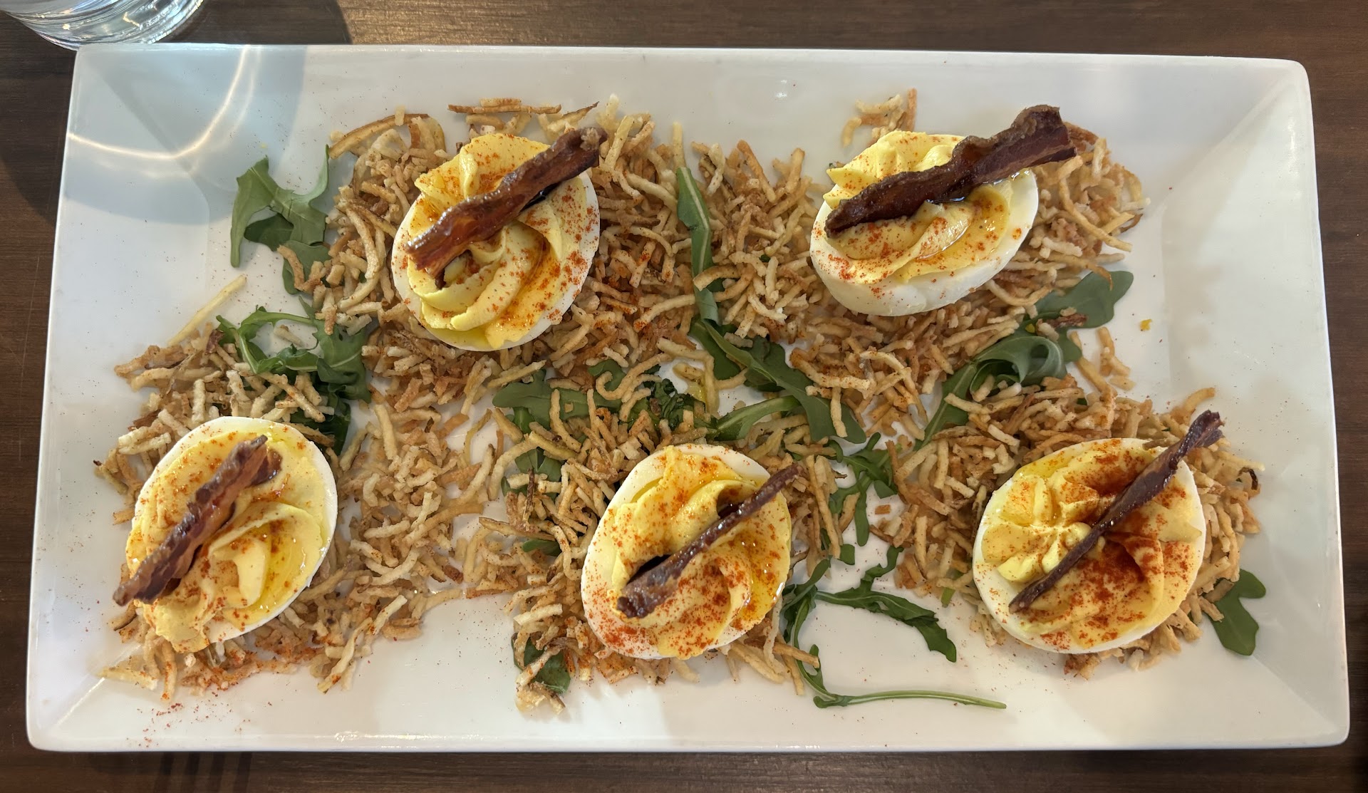 Read moreThis place has hit the mark in so many ways. Being a Fine Dining Server/Bartender/Chef/Kitchen Manager/ Floor Manager/Prep Cook/Etc. Over the last 24 years, I rarely walk into a restaurant and leave highly impressed. They say nurses make the worst patients and I get that, because I always find myself critiquing every position when I dine out. I will do a brief walk through. I walked in with my friend/High Tea Manager Alan and was greeted immediately by Eric who sat us. I was impressed by the cleanliness of the restaurant and the decor. Eric got our drink order and described the drink menu and wine list with great detail. He attempted to sell us a bottle of wine at very little over market price. I didn’t tell him I don’t drink because I wanted to test his knowledge on wines lol. I ordered a sweet tea which I know is not on the menu, it’s not on the menu at my restaurant either but can easily be made with simple syrup so I ordered that. Again very impressed. I had 3 cups and my drink was replaced every time before it ran out with a new tea and side of simple syrup from the bar. Everything about Eric’s presentation and knowledge of the menu and wine/cocktail was outstanding. He even offered us a lunch and dinner menu because it was close to 4. Eric is very knowledgeable. On top of that he has a way of making his guests feel comfortable, and not rushed. It was a personal and enjoyable experience. You can tell that Eric has a passion for serving and a gift that very few of us have. He holds the same values as me when it comes to the customer and the well being of the restaurant being more important than money. I took several pictures but it’s not letting me upload them for some reason. I can only find these 2 pictures from my gallery. So being experienced in the back of the house next I critique end food. I ordered the deviled eggs and French soup. The taste of the food was amazing and so was the presentation, Eric properly coursed my order. Then I ordered the burger and I was in heaven, many years ago I cooked at a restaurant in Florida that used different steaks to grind up and make burgers and they were so good. When I bit into this burger made with steaks and short rib it brought back so many good memories of my early 20s and working there, it was just great. The homemade ketchup with Frites was incredible.The head chef even came to the table to introduce himself which was awesome. The bartender introduced himself and so did the manager. I couldn’t possibly eat anymore. I will definitely be back to try dessert. Everything about this experience made me and my guest leaving amazed. Outstanding job...