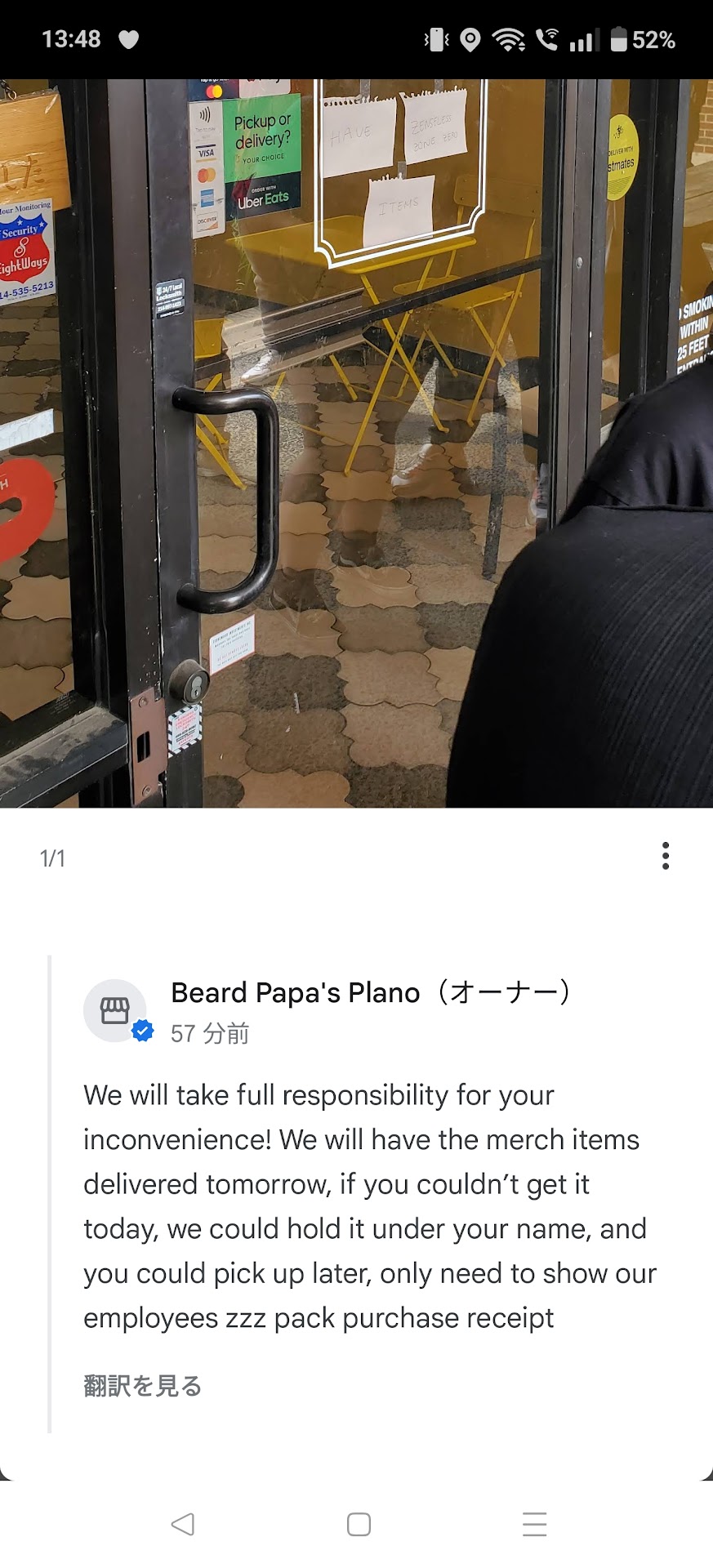 Read moreI drove 45 minutes to this location because it was the closest one to me, only to wait in line for 50 minutes and be told they didn’t have any of the items for the Zenless Zone Zero collaboration event. The Beard Papa website even listed this location as a participating store for the nationwide event starting on 6/8.