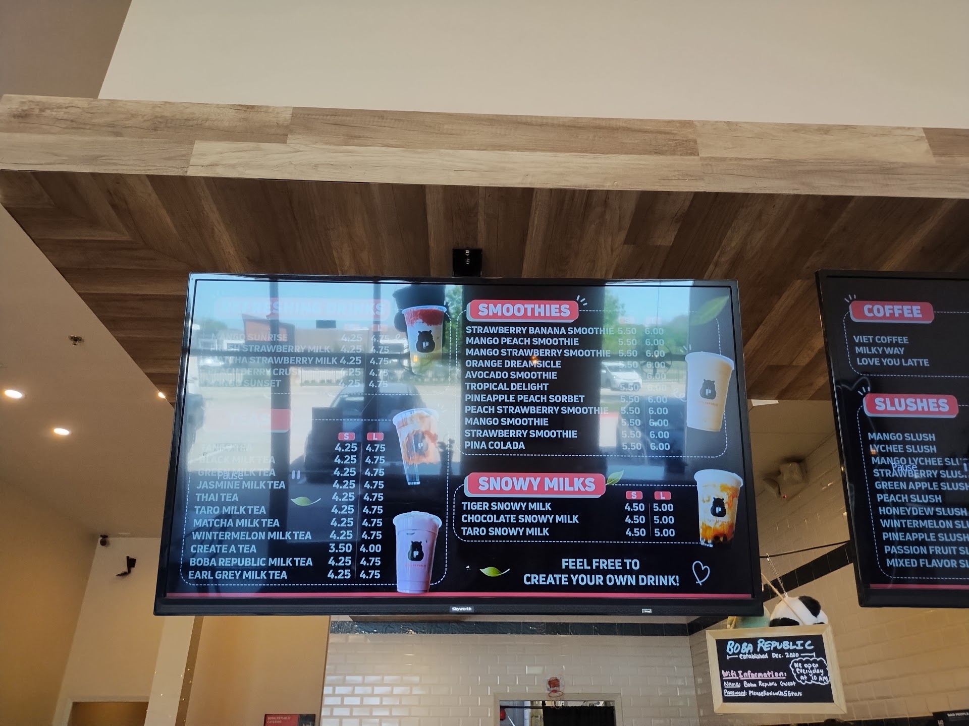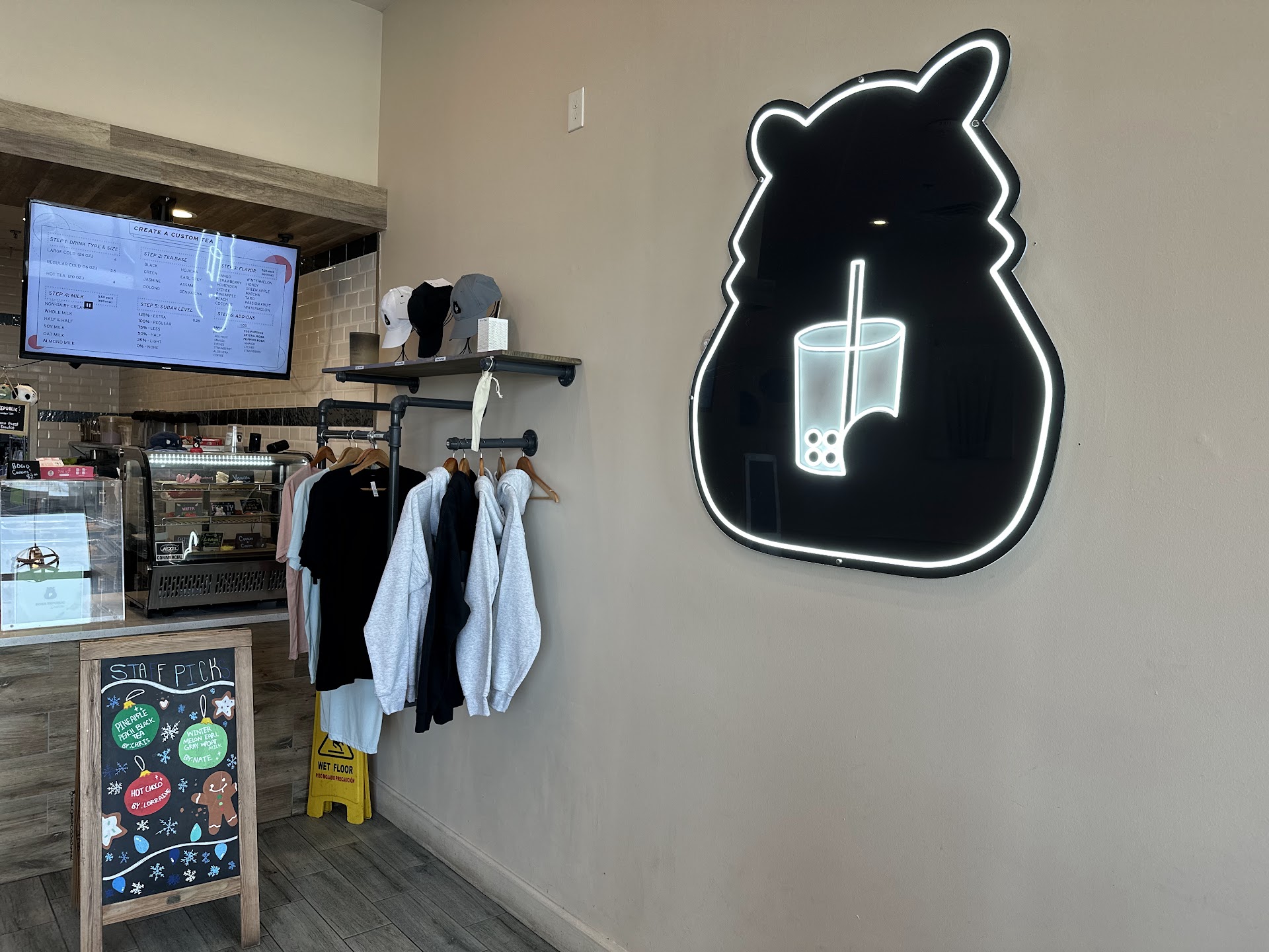 Boba Republic is by far my favorite boba establishment. I have multiple boba stores closer to where I live but I will go out of my way to drive here every time. It's always clean inside, and board games are offered to spend time with friends and family while sipping on drinks. There are premade drink options as well as build-your-own tea if you would like something made to your taste. Drinks are highly customizable, even to your preferred percentage of sweetness. Macarons and fresh cookies baked in-house are available for purchase. I have personally only tried the chocolate chip cookies, but they are exceptional and perfect for a sweet craving. For die-hard boba fans there is a selection of Boba Republic merchandise available. One of my favorite things about this place is how late they are open, perfect for late night cravings, Mon-Sat open 11am-10pm and Sunday 11am-9pm. My favorite drink to order here is the Matcha-Strawberry milk at 75% sweetness with tapioca pearls. I definitely recommend this store...