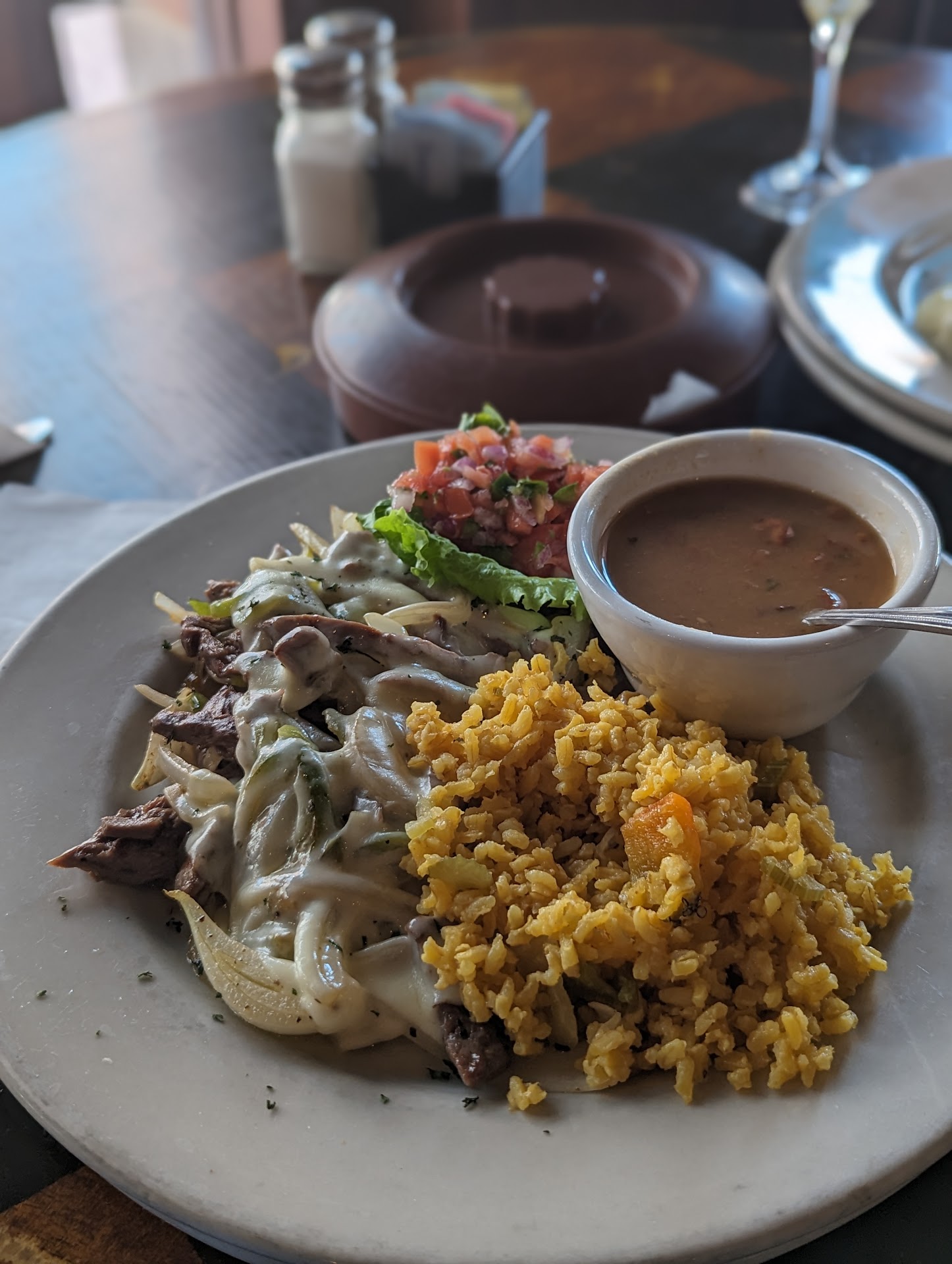 Ā Ā Ā Read moreAlways wanted to come here since I've heard so many good things. We came around lunch which was perfect since it tends to be crowded during the evenings. My friend wasn't drinking due to cancer treatments so our server Jessica (who didn't know this) served her plain water drink drink extra special with an umbrella and lime. This was so cute and thoughtful. We both ordered from the lunch menu where she had the Poblano Chicken and I had the Santiago Beef. Both were delicious and we couldn't eat another bite. The atmosphere was great since it wasn't crowded which made it perfect for conversation. There is a patio as well where you can catch the band playing or people watch. Will be...