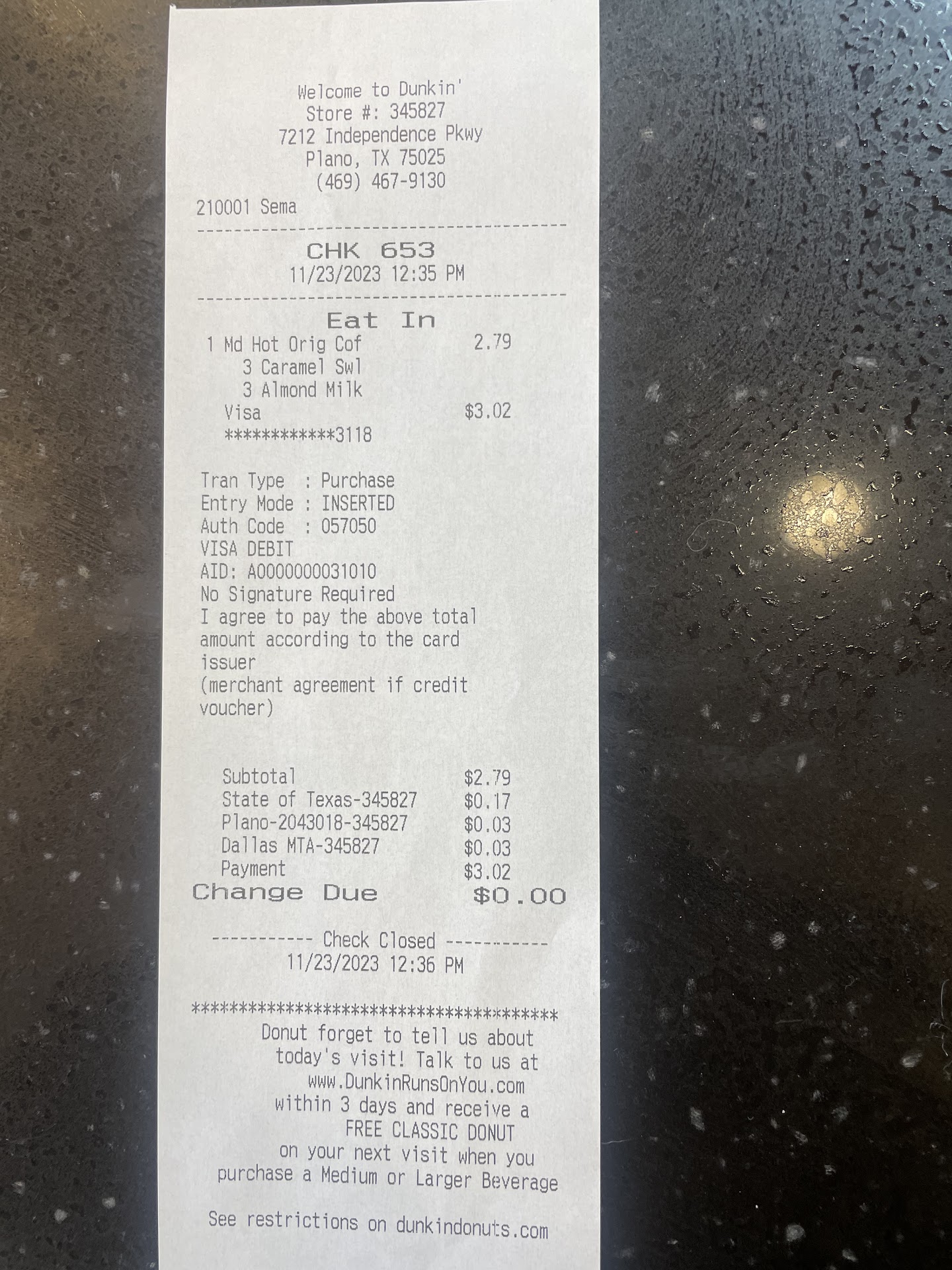 Coffee is gross. It's not the same formula they use in other states and is disgusting at this location.