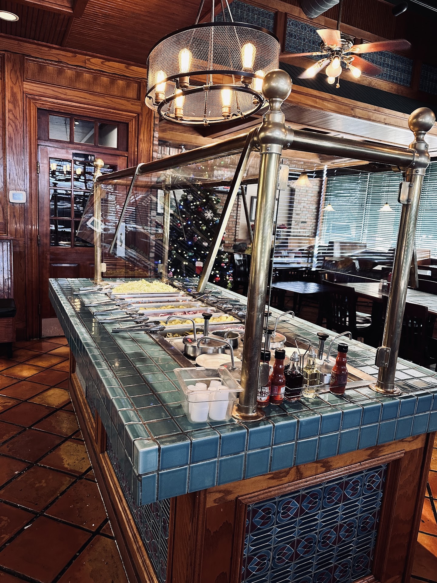 Waiting: I sat down and took in the atmosphere. It was clean, busy, and they still had plenty of seating. They also have a bar for toppings. If you desire to eat in, you load your own toppings, which is a big plus in my book. This fast food chain looks like a renovated Italian restaurant in the inside.