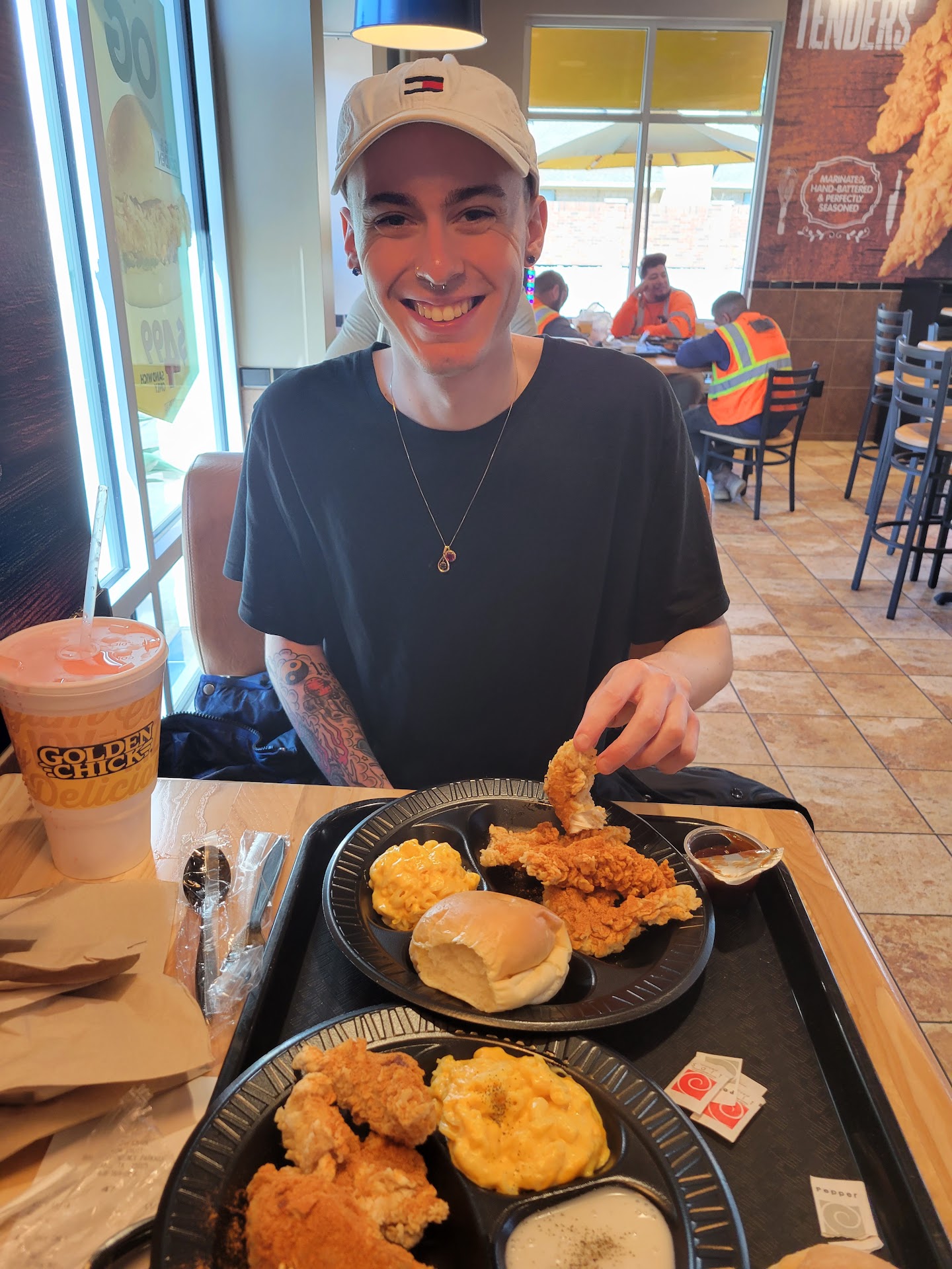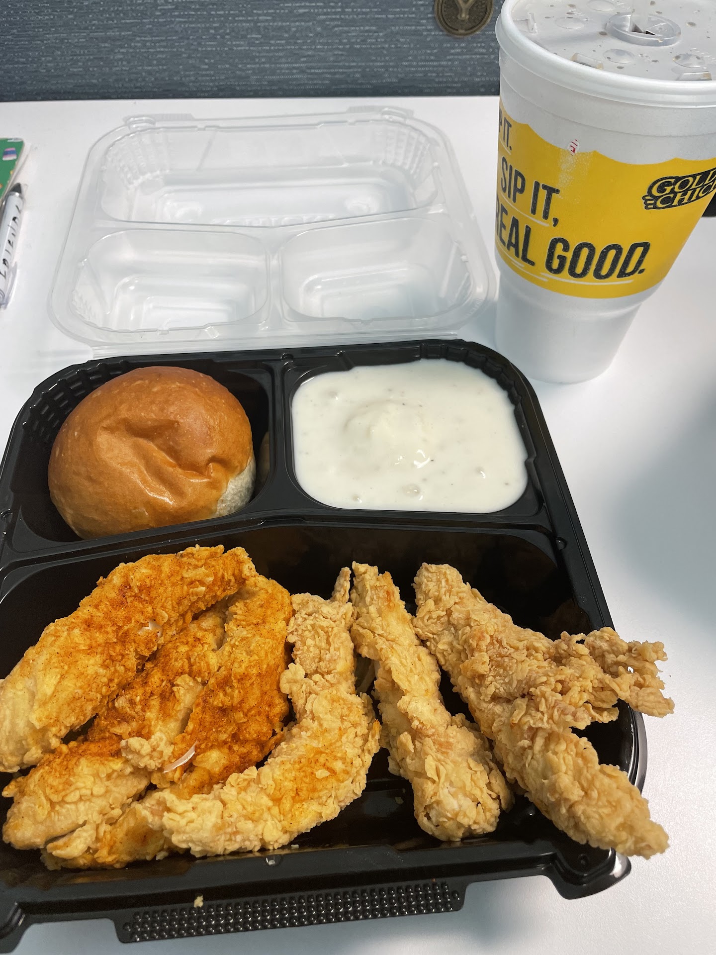 Read moreVery disappointed in the "supposedly fresh, NOT frozen beer battered Cod sandwich. I asked the manager to remove Cole slaw from sandwich and when I got sandwich I got nothing but batter and Cole slaw. The fish was easily 2 oz but seemed like a 6 oz filet with all the batter/breading. Ice machine out of ice, plastic ware not in bins, no napkins in dispenser. Had to ask several times for napkins and finally got napkins 3/4 into our food. I was not impressed with food or service. There was an Asian worker wearing a blue shirt who did make every attempt to exceed my expectations but had already made my dining experience very unpleasant. I will not order from this establishment again. The only reason why we came to eat here is because of the advertisement on 105.3 The Fan radio station. Golden Chick should jyst stick to...