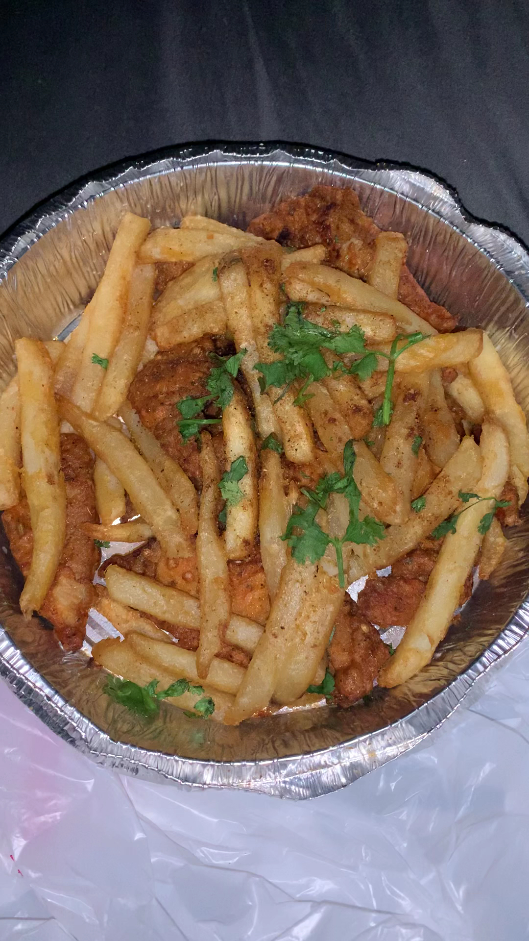 My experience here was less than ideal and the food was to match. The place was a mess to say the very least. My order was a Chapli Kebab Burger combo with curly fries. As you can see in my picture I was not given any curly fries on my to-go order.