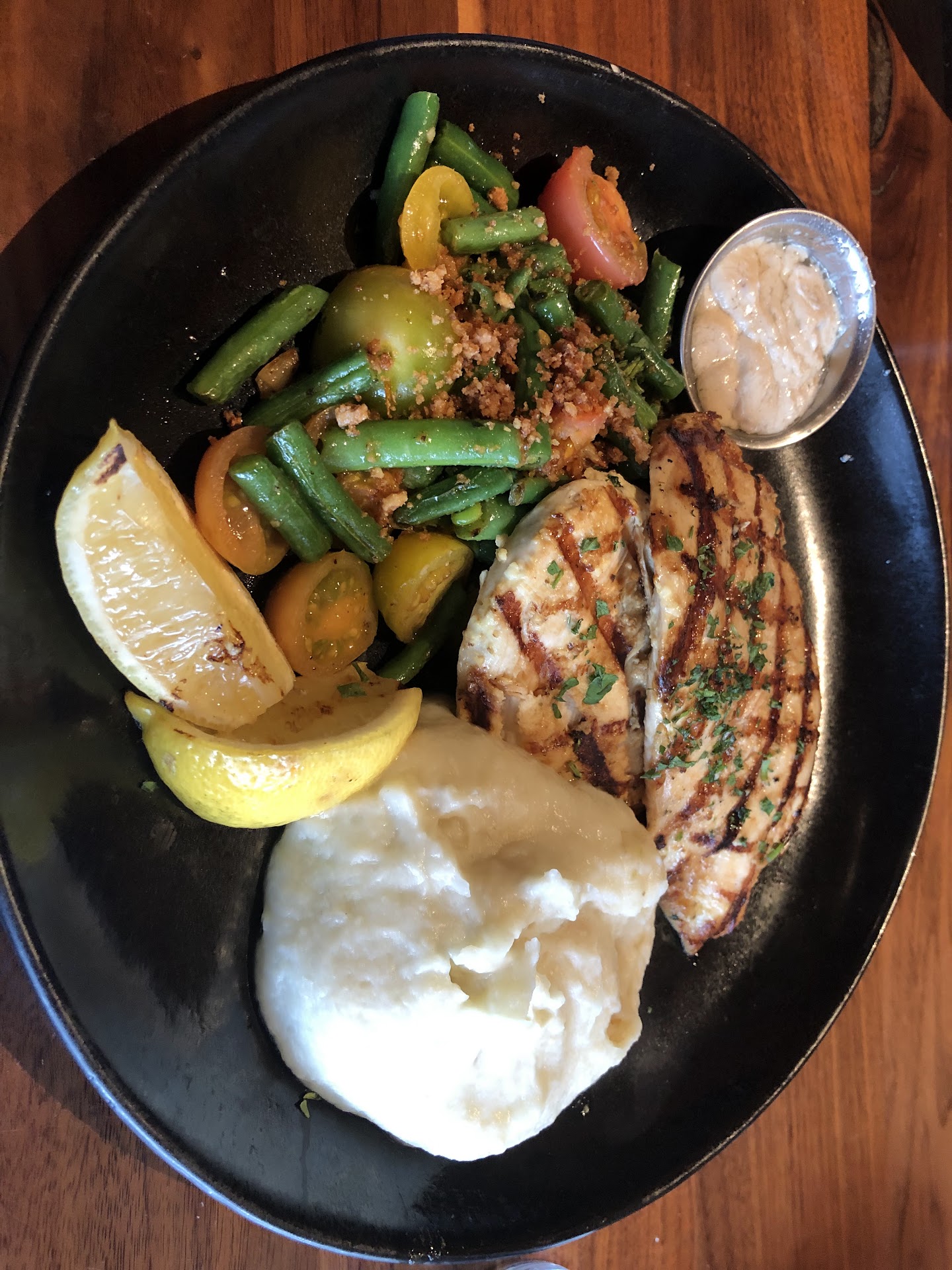 I've tried several dishes here, including the fish and chips, which were damn excellent. My husband went for the chicken katsu sandwich. On another occasion, I had something akin to a Nashville chicken salad, which was damn delicious. I must note that it leaned a bit on the sweet side, which I didn't mind initially, as I enjoy a mix of sweet and savory, but there were just a tad too many sweet elements - the walnuts, the dressing, and even the cornbread.