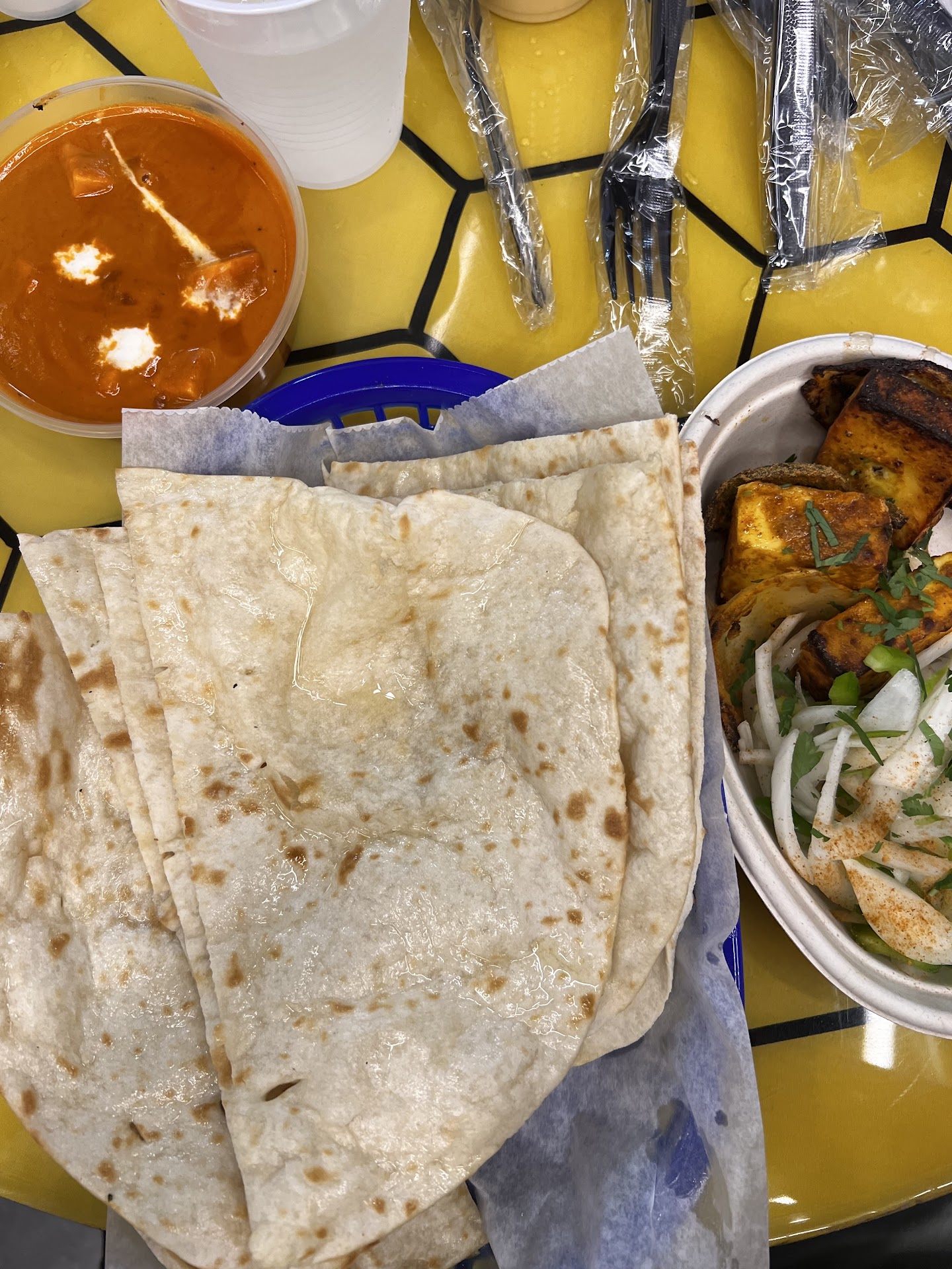 The Manager lady was courteous enough to enquire with us about the taste of the food a couple of times. Nice welcome attitude. The only negative is the quantity of the food for the price you pay. For just the 2 of us, we did not find the food sufficient. Usually, with Naan, a curry and Biryani, we have to use a To-Go box for the left-overs. But, here, even after finishing off the food, we were still hungry. Remember, the price is not too cheap either. So, I guess, they need to work on the quantity of the food on each order.