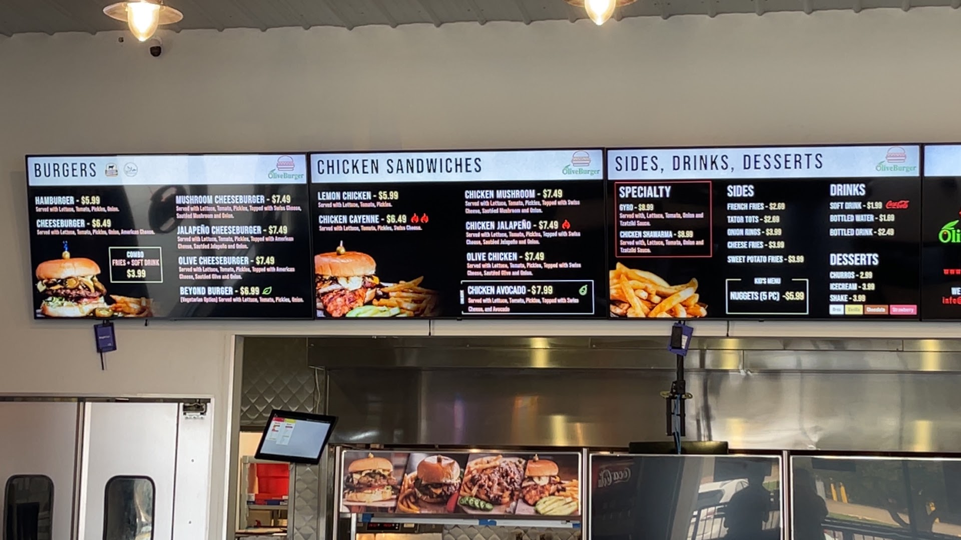I'm super disappointed by the food and I was astonished because several people have recommended olive burger over the years. I have heard great reviews of this place and I finally tried it today and was extremely disappointed. I ordered the gyro sandwich which was $8 just for a sandwich, and I was planning on ordering either their sweet potato fries @ $3.29 or the fried zucchini appetizer @ $4. The employees showed me the size of the container they use and it was so little that it was almost cute. I opted not to get any of this side dishes because I feel like it was a rip off for the quantity and high price. I did not order any specifications or modifications on the gyro sandwich so they made it as they normally would but I did ask for extra tzatziki sauce on the side and it comes in tiny little 1 ounce containers so I ended up needing four of them to eat the sandwich. The gyro sandwich was not very good in my opinion. Whomever prepared the sandwich was extremely heavy handed with the raw onion, to the point that every single bite for the first half of the sandwich only tasted like onion, and I didn't even taste the gyro meat until I got sick of all of the onion and tried to remove it. Then after I removed all of the onions that I could see the sandwich still had onions hiding that I missed. The gyro was literally inundated with raw onion and it had very little tomato and cheap iceberg lettuce. Whoever made the sandwich folded it up so it was not distributed evenly, so the top half of the sandwich was mostly vegetables and the bottom half of the sandwich was mostly meat. Last three bites of the gyro sandwich only contained gyro meat which is a blend of lamb and beef. Other than the ridiculous amount of raw onion, the most disappointing part of the sandwich was the stale pita bread. The pita bread was not soft or fresh at all. The bread was stale and chewy and then they grilled the heck out of it which ended up creating hard parts of bread that ended up poking my mouth repeatedly, so I felt like I was eating Captain Crunch cereal or something hard, considering how many times the roof of my mouth got poked by charred pita bread. I probably will not go back but if I do I guarantee I will not order the gyro again despite that it came recommended. I feel like the sandwiches are a little overpriced and all of the sides and appetizers are extremely overpriced considering the portion size. At 4 o'clock in the afternoon I was the only customer in the entire establishment, red flag... The only positive thing that I can say is that the guy working the register was very...