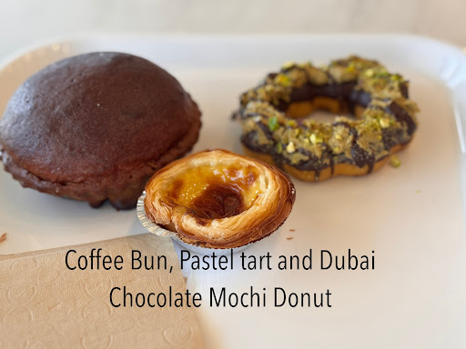 Cons: the flavor was lacking where it was needed most, we got a Coffee Bun, a Dubai Chocolate Mochi donut, a Pastel de Nata, a slice of Strawberry Pistachio Cake, a Mango smoothie and Iced Green tea. The food display was plenty, but were ordinary selections you could get from any regular Greenville Avenue bakery. Nothing eye-popping that we āhad toā try. Didnāt particularly like the špistachioš°, the syrup used reminded me of those plastic balloons we squeezed out of tubes and blew up with a tiny straw as kids.