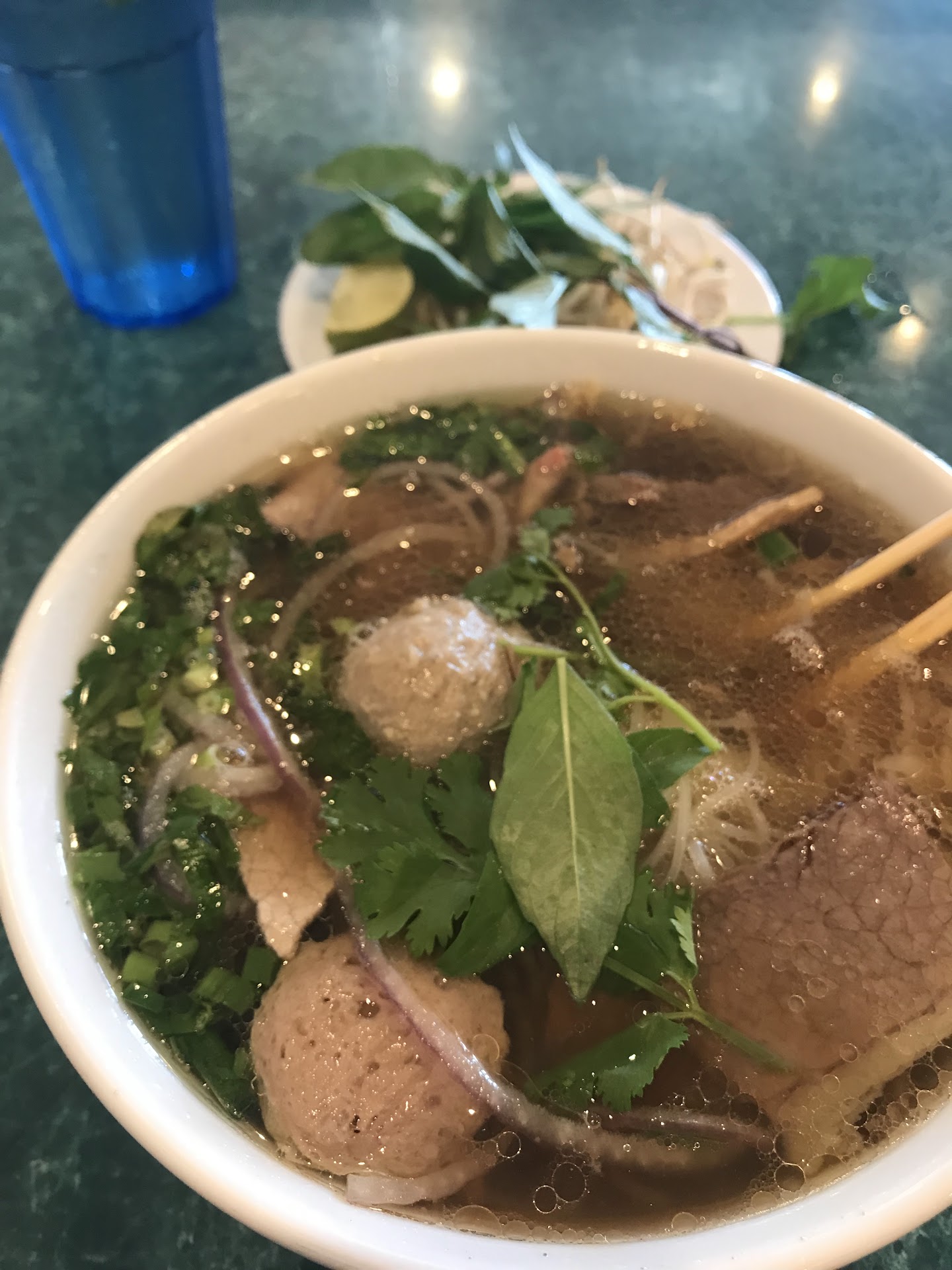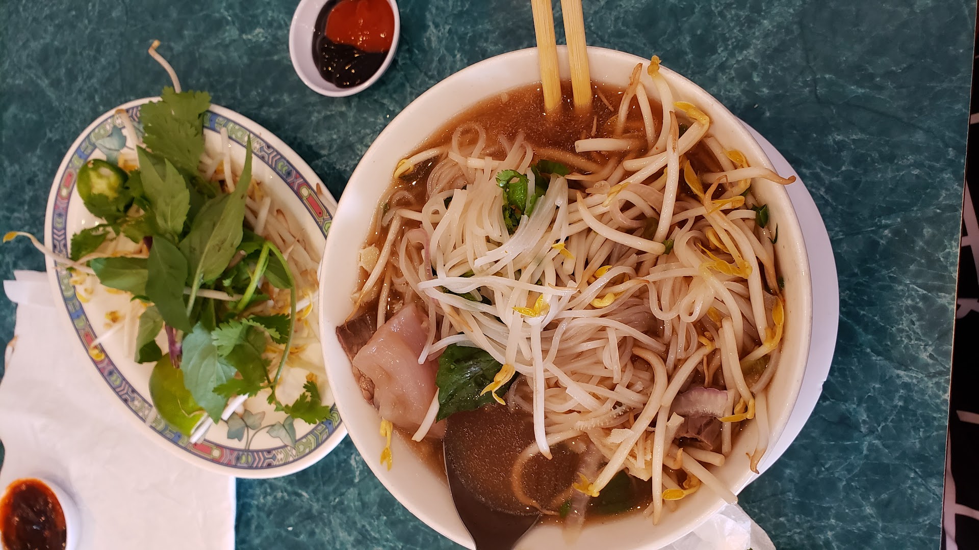 Read moreExcellent Beef Pho!!! Are you Pho~natic? I certainly am! Stopped in to try Pho Que Huong and I was NOT disappointed! Down to business staff with no frills, but still friendly. I ordered a large Eye Round, flank and tendon pho. Quickly received a generous bowl of aromatic beef Pho with the plate of traditional additions of bean sprouts, sliced jalapenos, cilantro, basil and a wedge of lime. First off, tasted the broth which was very flavorful, clear and piping hot. Generous rice noodles garnished with red and green onions. Combined all the additions into it and enjoyed ever bit of it. Very satisfying and not at all heavy which is what I like about Pho. The restaurant itself is very simple and clean with additional space . Very comfortable. Glad to see there were people waiting to go in to have Pho. Give it a try!