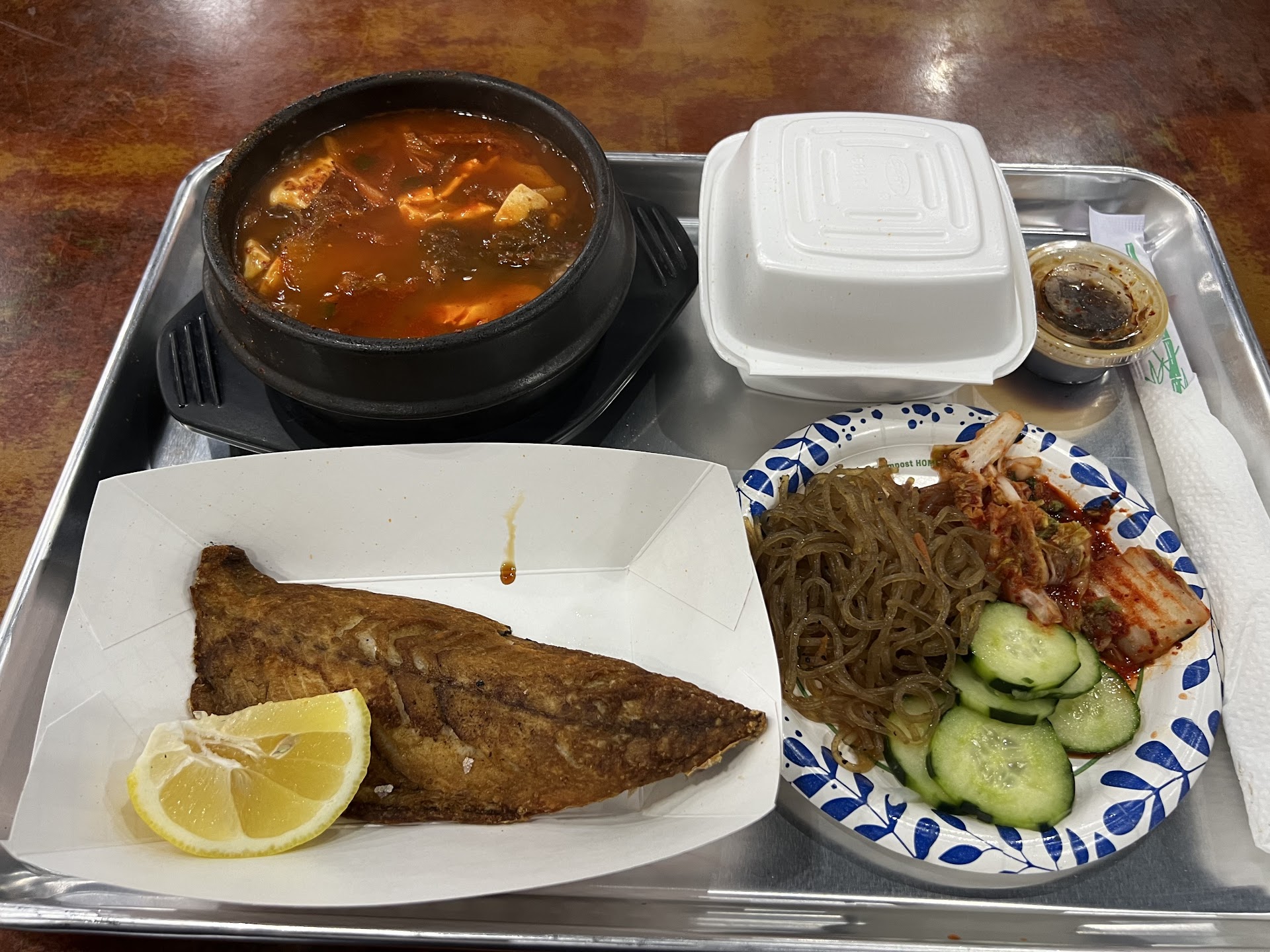 Read morePretty decent place in a random food court of a shopping plaza. Interestingly it can only be accessed from one entrance rather than an internal hallway to connect to other shops. The beef soondooboo was nicely beefy and the oyster soondooboo wasn't stingy with the oyster. The galbi from the soondooboo+galbi special was a decent amount, but don't expect super high quality meat in texture. The tofu in the beef soondooboo was a bit strangely textured however, like it had been frozen and defrosted before. The banchan it comes with is some dangmyeon, cucumbers, and omook fishcakes. There was a strange lack of kimchi...