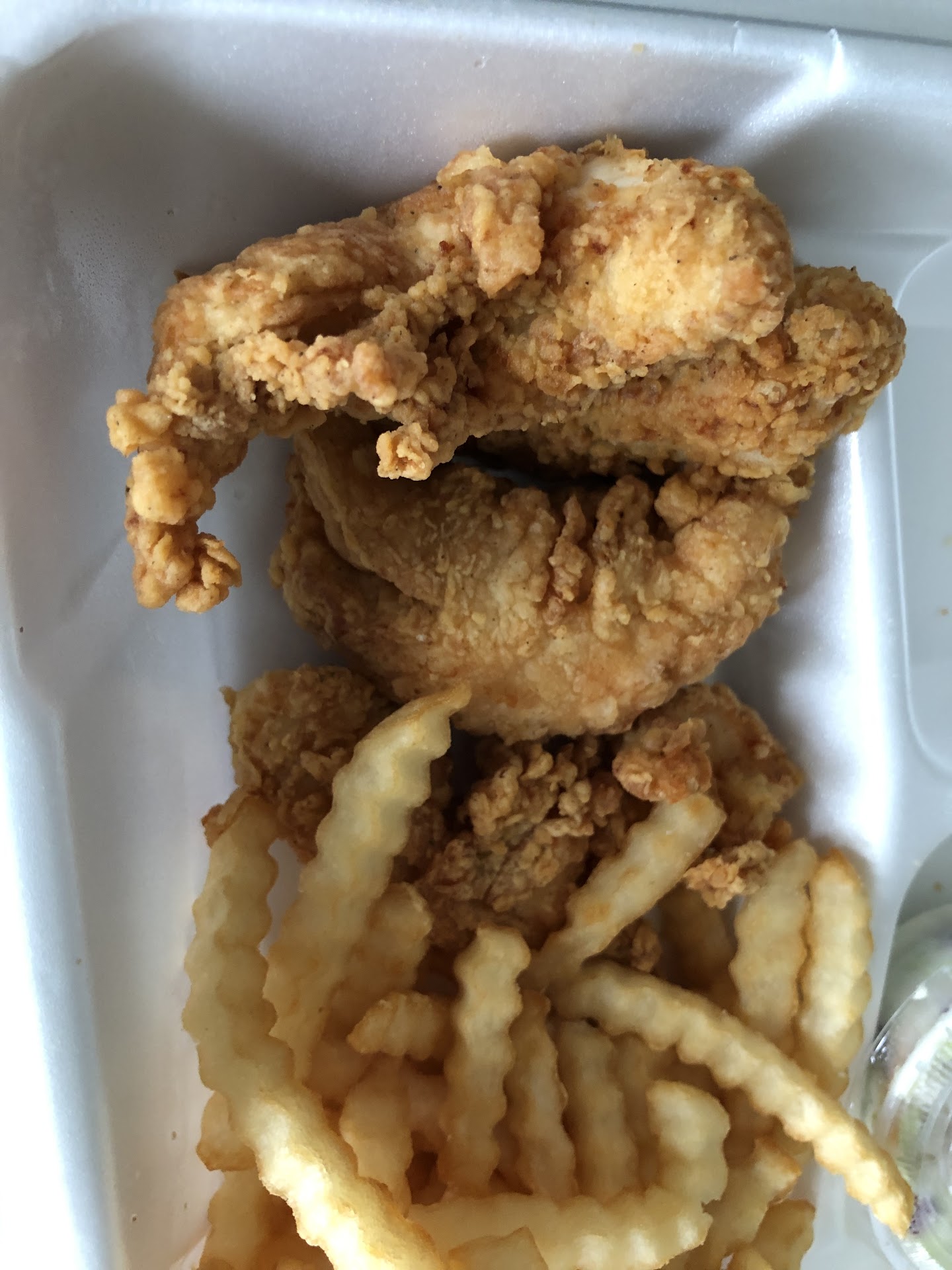 Once I took lunch to work I was extremely pleased that chicken was freshly cooked, delicious & truly made it a perfect lunch for someone in a hurry for a quick snack. Fries were also freshly made & coleslaw was good, dipping sauce for chicken is delicious & fresh squeezed lemonade here is always great.