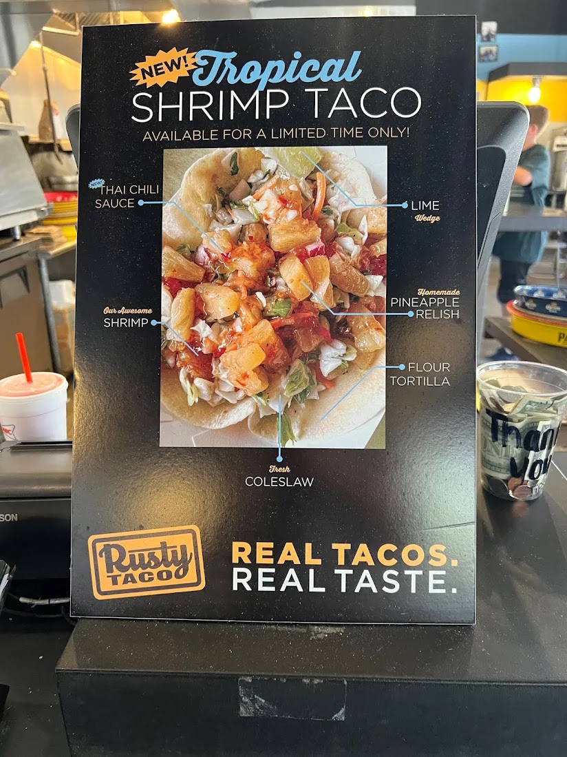 Read moreI will visit this one of two remaining Rusty locations when nearby as the one in Murphy sadly closed too soon. Today was an all time low as I ordered my usual 3 tacos all on flour tortillas and no onions with Chips and salsa. First, 2 of the 3 tacos were on corn instead of flour and one included onions. Second, the bags of chips and salsa were not included. As I mentioned this to the owner he then went to the register to pull my transaction to verify if I was charged rather than believing an honest customers word. He then stated he could fix this and charge me now for the chips, which I refused to have another charge on my card as I needed to leave to get back to work. Now I will also make note of the blonde woman whoâs order in front of me and coincidentally her order was incomplete also. The owners greeting to her was âhey gorgeous how are you today?â When she informed him of her missing item, his response was completely different and took her word as face value, didnât insult her by looking up her transaction and provided her with the stated missing item. I am offended and saddened by this overall experience while businessâs are challenged during this pandemic and even customers arenât treated equally, even by the owner. Learning experience for sure and hoping he learns...
