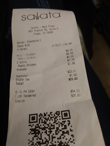 Read moreSalata on Preston Road is a great spot for a fresh salad and a clean, comfortable place to eat.