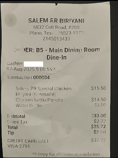 Read moreWe recently visited R.R. Biryani and were very disappointed with the bottled water charges. They charged $1.50 for a small 500 ml bottle, which we feel is extremely UNFAIR. We ordered two bottles and ended up paying $3 just for water.
