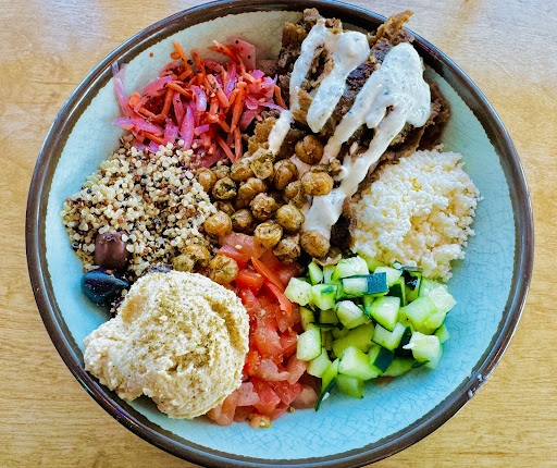 Started things off with cold water infused with lime and oranges. It is a serve-yourself concept along with a soda station right next to it. Mom ordered a Chicken Medi Bowl and I ordered a Beef & Lamb Medi Bowl- from the perfectly portioned meat to tahini and dill quinoa ratio enhanced by the plethora of herbs and spices to the freshness of the cucumbers, tomatoes, feta, hummus, pickled red onions, tzatziki, crispy garbanzos and zatar - we truly enjoyed every bite and we both agreed it was the star of the show! Aesthetically pleasing in presentation and taste, this dish truly shined and will clearly be our choice when we return for lunch another day. The tzatziki and garlic aioli dipping sauces complemented the thin and crispy texture and flavor of the large fries that we ordered and shared as well. No complaints.