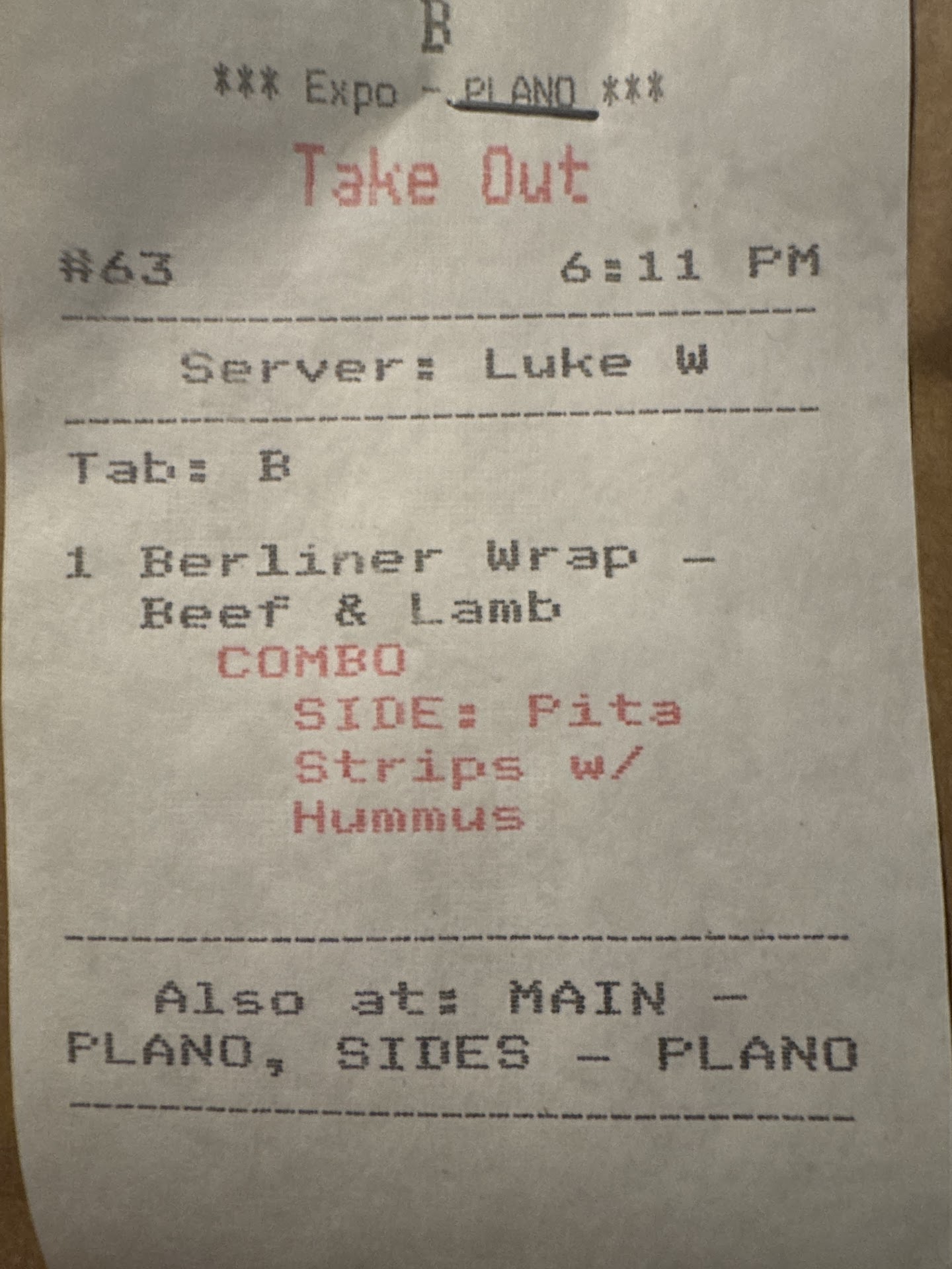Read moreTerrible experience today. I asked if the doner wraps were included in the âGyro Comboâ. The cashier said âyesâ so I ordered the Berliner doner. He brought out the wrong order, which he fixedâŚthough the food was cold and the wrap was soggy when he brought it out. They should have replaced the fries that had been brought out hot 10 minutes earlier.