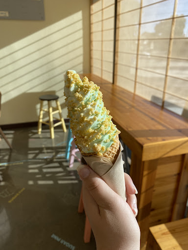 I tried the popcorn and ordered the genmaicha marshmallow with potato chips and sweet milk drizzle in a salted corn cone, and both were unique and delicious. My boyfriend ordered the genmaicha/chocolate hazelnut swirl with lava salt and chocolate crunch pearls in a cinnamon sugar cone and enjoyed his as well.
