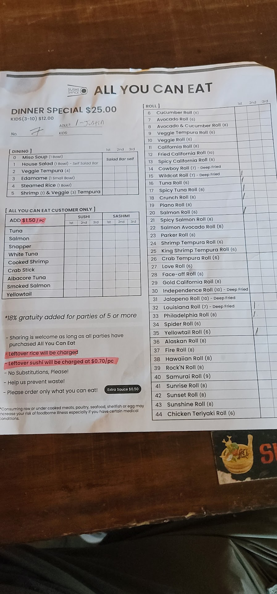 Notice how often Cucumber, Avocado, Crab stick, and Cream Cheese come up? They boast they have a wide variety, but in reality they offer very little.