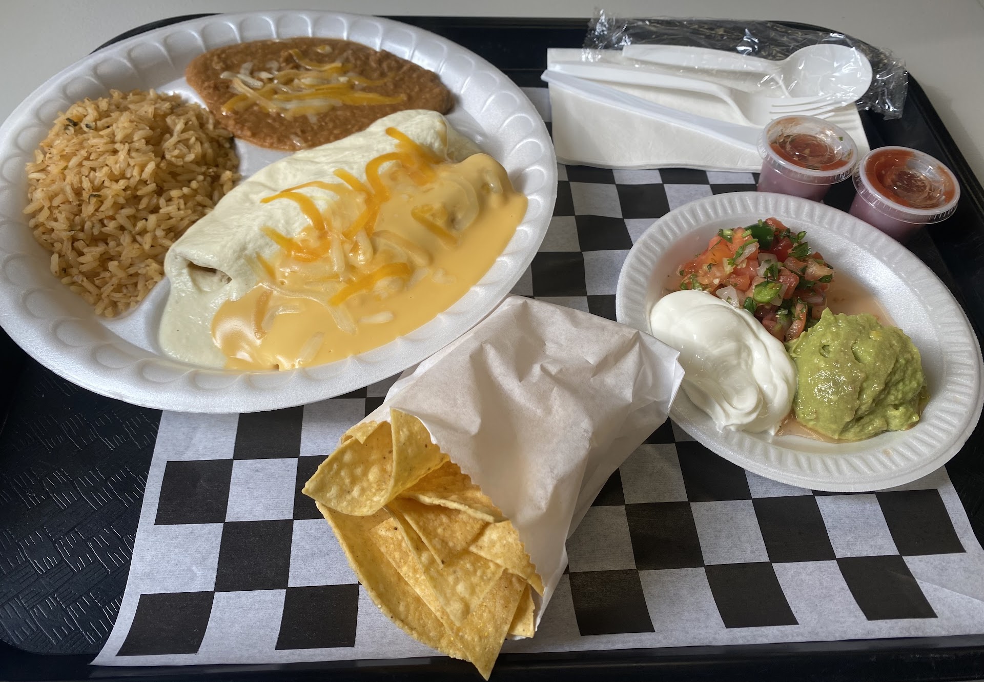 Read moreStopped in here because I was told that everything was hand-made. The food was average, at best, and not hand-made. Maybe hand-assembled is a better term. The salsa came in a container so small it could not be used for dipping the chips in, and the salsa itself was only average, if not a bit below average. One bright spot: I ordered a burrito with rice & beans. When I was only served the burrito, and pointed it out to the customer service clerk, I was told that the burrito combo (Which I did not order) only came with the burrito itself. I said "OK", and went to sit down. The clerk, a few minutes later, brought me a cup of rice & beans at no charge. I thought that was pretty excellent. So, in summary--good customer service, good people, good atmosphere. The establishment was clean and well-lit. The soda fountain and other facilities were very good. The food, however--just average. I'm not saying I won't go again, but I am saying that it won't ever be my first choice. That said, for what it is--a fast-food taco joint--it's probably a...