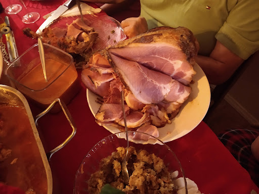 My SIL family always gets a Honey Baked Ham for the holidays so I figured since he was in Texas and not with his family in GA for the meal I would get one as well, for the comfort you know? I was nervous as the reviews online for the location by my home were very discouraging. So I selected pick up for the Plano location. And I was not disappointed! They kept the lines flowing, all the staff were very kind, I even got a sample of their turkey-SO STINKING GOOD! š The ham was a conundrum, you donāt cook it⦠itās served cold, well I put mine on top of my stove while my oven was on so it would warm up a bit and it was delicious! Probably going to be our go to ham for family meals and holiday...