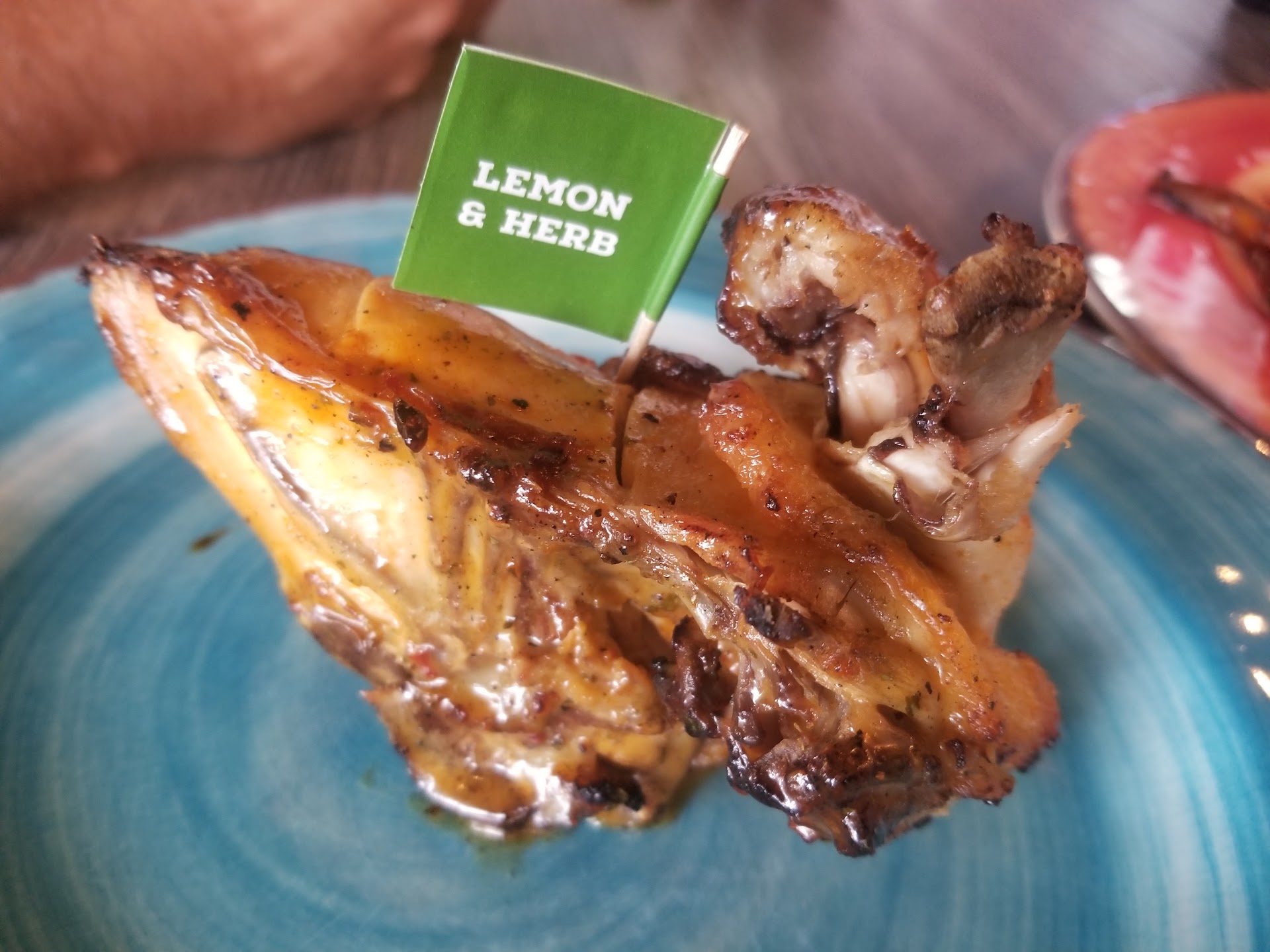 We here for chicken so we got the 1/4 chicken breast and wing with lemon and herb with side of peri peri cor And another order ..same with extra hot with peri peri fries