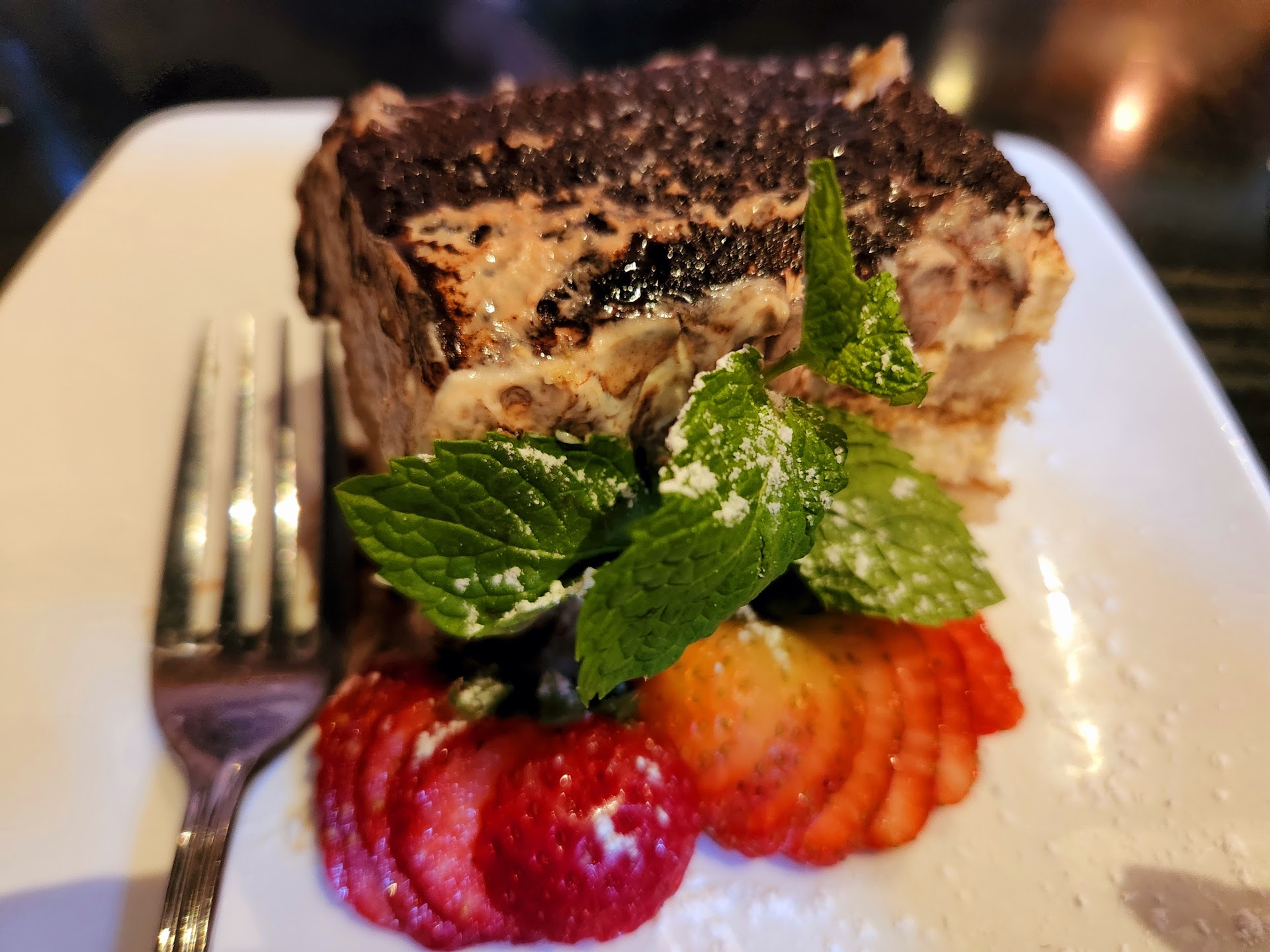Everything about Urban Crust is outstanding! The food, the atmosphere, the service! Allan & I each ordered a 12" pizza, (Just to have leftovers). We ordered a bottle of Moda but sadly they were out of Moda. However, we very much enjoyed the Gabbiano Chianti. Chris brought us a basket of fresh hot bread and a divided tray of marinara sauce and minced olives sitting in Urban Crust Olive Oil. This complementary starter is sooo good, we ordered a pint of each to go, as well as a bottle of OO. ($12 ea/$14) Our pizza's arrived quickly. We love Urban Crust's fresh grated parmesean b/c it is like no other parmesean! In fact, we never add parmesean anywhere else. Allan is a meat-eater so he was thrilled at the generous amount of medallion sized sirloin. The mozzarella is flown in from Italy and one can immediatelytell it is different from all the others. Allan wanted to order a caprese with burrata, but I knew it was too much food. However, I do regret not ordering it "to go". We boxed half of our pizzas and ordered the fresh, made in-house Tiramisu. What can I say but the first bite was heaven! Note: Next visit will be upstairs where we can watch the sunset and dine by the Ice Bar. The Ice Bar is absolutely beautiful and I promise to follow up with post from "The Urban Crust Part 2, Upstairs". It is amazingly beautiful but please, go experience it for yourself! Thanks Chris for your phenomenal service! And, guess what we're having for dinner...