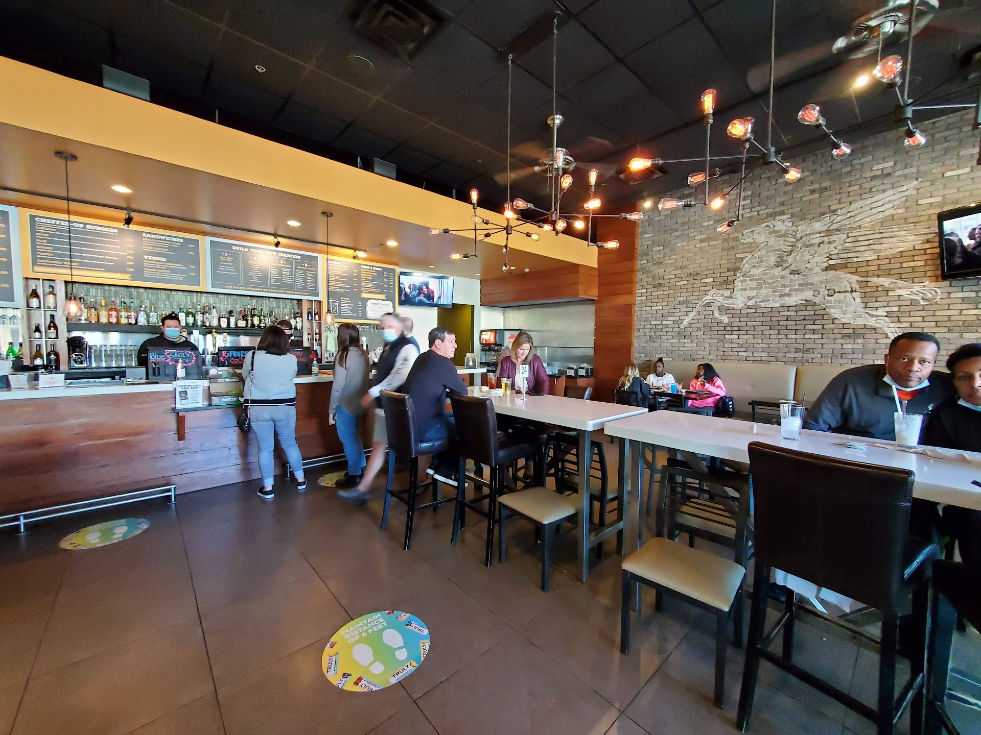 Read moreThe place is located in western strip of the Shops At Legacy. The place is a counter service where they bring you your food. I find it kind of odd that they set up the counter right in the center of the bar, but to each their own. There is a lot of seating for such a small place but its real crunched in like they were trying to fit every possible seat, understandable since the lease probably wasn't cheap. One thing that bothered me was that most of the high chair straps were broken, so we used the least broken one.