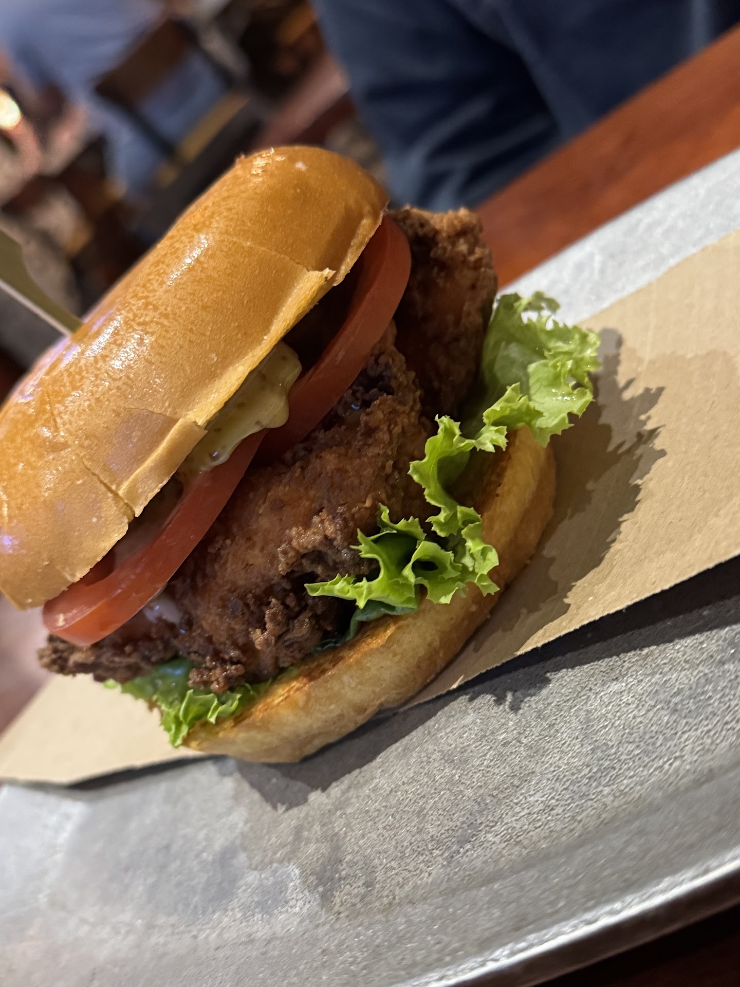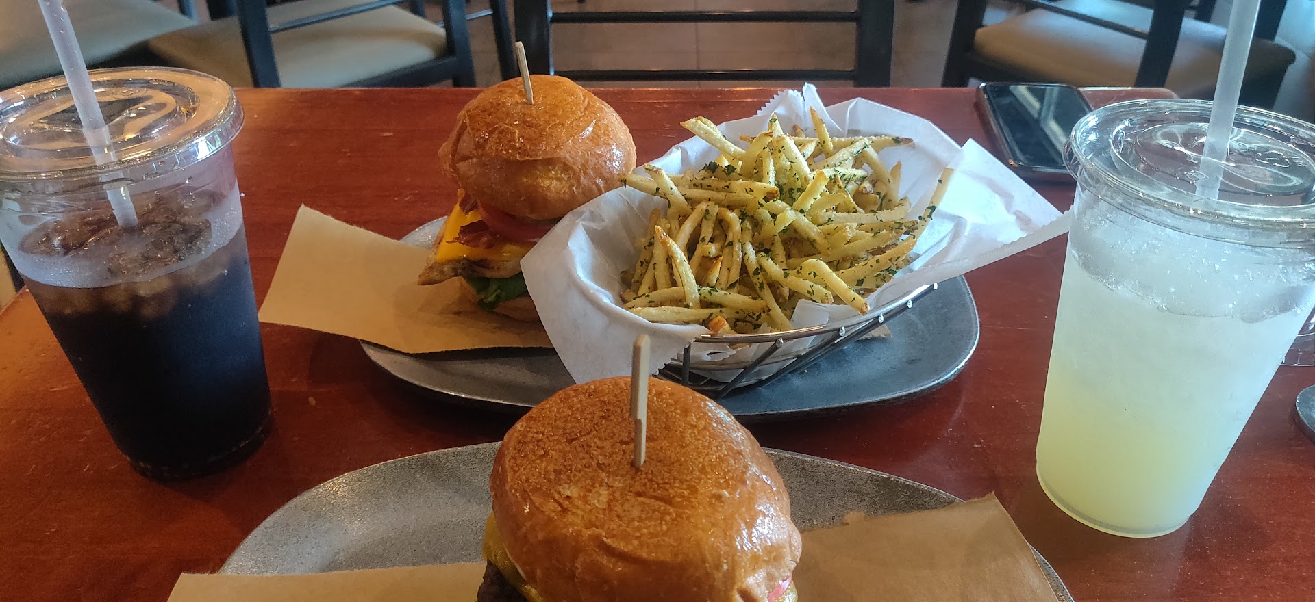 The food. So I ordered the Blue burger with the truffle fries because they looked good in the picture. It took a while to come out, and it ended up being just mildly warm like it has been sitting there and the same went for the fries. It took a while for it to come out. The meat lacked seasoning and was rather dry. For the price I paid... there are lot of options nearby that could be had.
