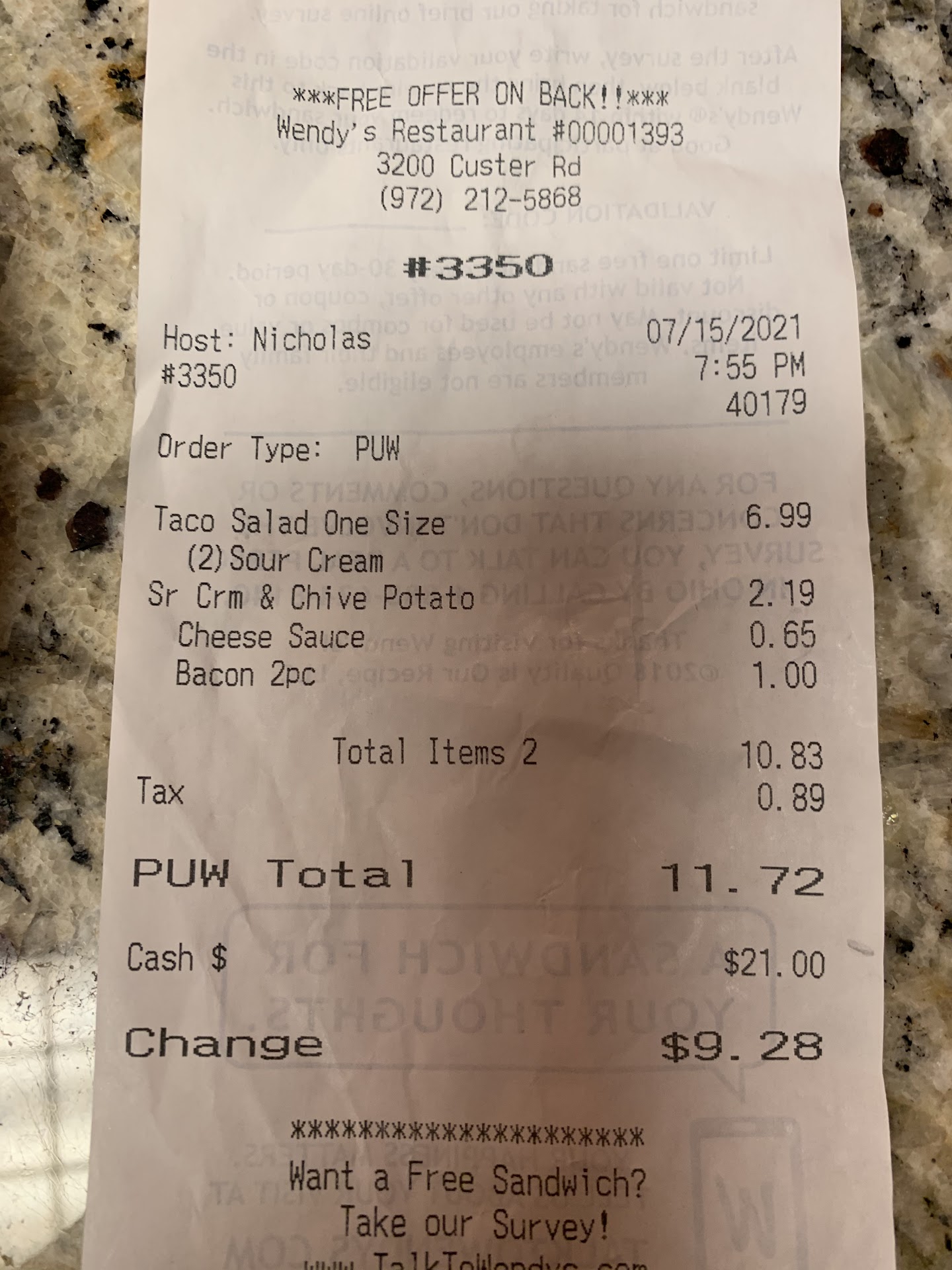 Read moreHey Wendy's i am a mystery shopper and a gm for another fast food restaurant. this was my last straw and i have to go to cooperate because nothing is being done to fix this store 3200 Custer Rd, Plano, TX 75075. I walked in and i did not receive a single welcome, Where is the HOSPITALITY? the customer does not feel valued here. Dirty lobby and I was standing in the lobby for 10 minutes I honestly wanted to walk out. Rude manager on phone and using inappropriate language. This is not the first time going here and its consistence with the bad hospitality at location and its always this one I have visited the one on spring creek and they make me feel welcomed and i receive my order fast without a wait time. if you want bad service and a wait time of 10 minutes come here to eat. They were not understaffed at all As well i feel like i can receive my food faster at ihop or a actual dine in. Only nice people were this young girl and another lady that assisted me with my order. I would shut down this restaurant if I was the Owner. Its honestly embarrassing and I guess am not the first person to leave a 1 star review,...