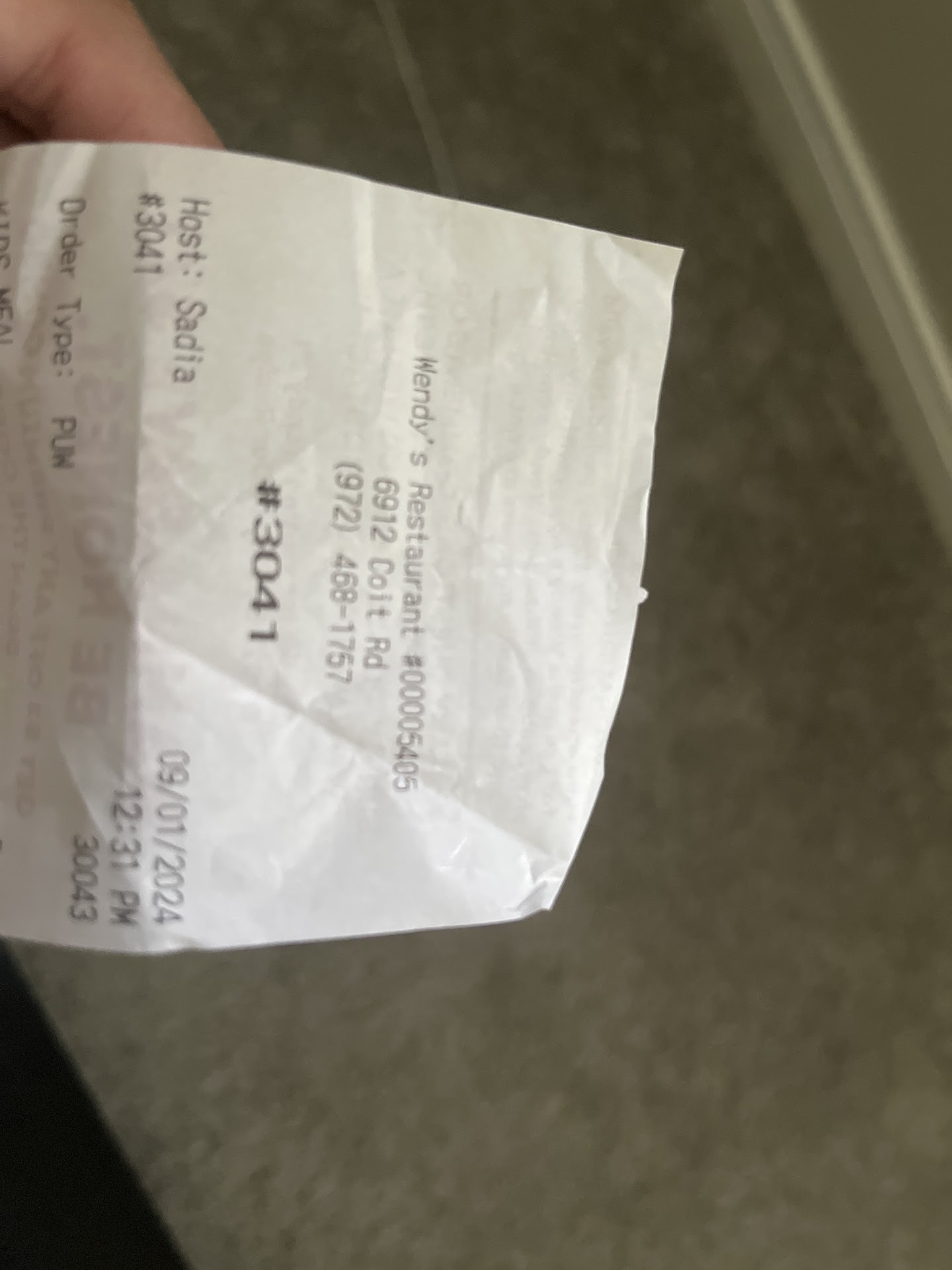 Read moreI normally love Wendy's and have no issues. But this was a first visit to this Coit location using the drive-thru. I ordered a 4pc chicken tender meal medium combo with sweet ice tea. I take my lunch to go to work. But boxed was 3 tenders instead of 4!!! It was not the deal this pregnant working lady needed today. Service at the pick up window was subpar, I had to asked 3 times for honey mustard sauce for my tender when asking if I could have some to put in the bag. But I got ketchup for the fries. The employee stared blankly at me but ended up giving me 1 sauce packet which was apparently enough for my shorted tenders I found out later. Needless to say I wasn't offered a receipt but should have asked for one. $7.24 for 3 tenders combo wasn't worth the drive back to get the missing tender. For lunch I debated to go to Raising Canes, I should have listened to my instincts than to go for the more...