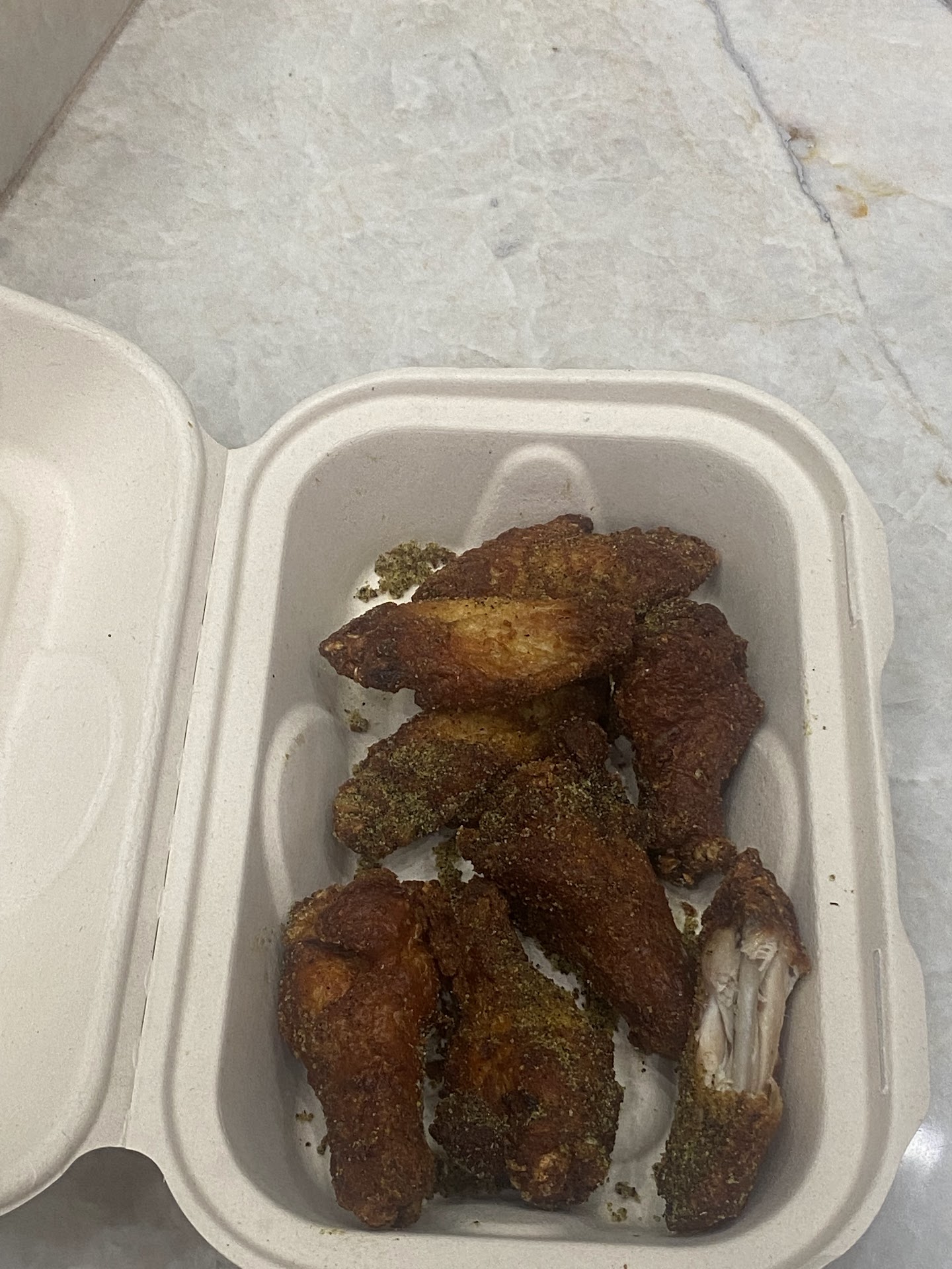 Ā Ā Ā Read moreI only gave one star because thatās the only way to leave a review, I went to Zio Alās and ordered a pizza and wings, walked out the door turned back around and asked if they could actually make it thin crust, the guy said they already put the order in and Iād have to buy a new pizza š„¹š«£š¤·š½āāļø. Ok no problemā¦waited on the pizza and wings and when it was ready went to get my Lemmon pepper wings and they were BURNED and extremely salty.. The guy insinuated how thatās how they make them there and maybe Iām just used to other places and that Zio Alās wings are popular and they use real Lemon pepper š«¢š¤·š½āāļøš¤·š½āāļø. I asked for my money back for the burned chicken and he began to loud talk me in front of customers.. denied the refund for the wings only.. until I told him I report to my bank and confirm that I would be writing a review. He then got really mad and said he would refund it all, (which I have not seen) Hereās my issue you can see that the wings were either recooked from a previous time or cooked in very old grease. I went home with pizza only and ate a few pieces.. woke up at 2 am feeling hot and cold flashes and sweats like I had food poisoning. I will never support Zio Alās. Check my next review for some really awesome pizza I had to make up for this horrible...