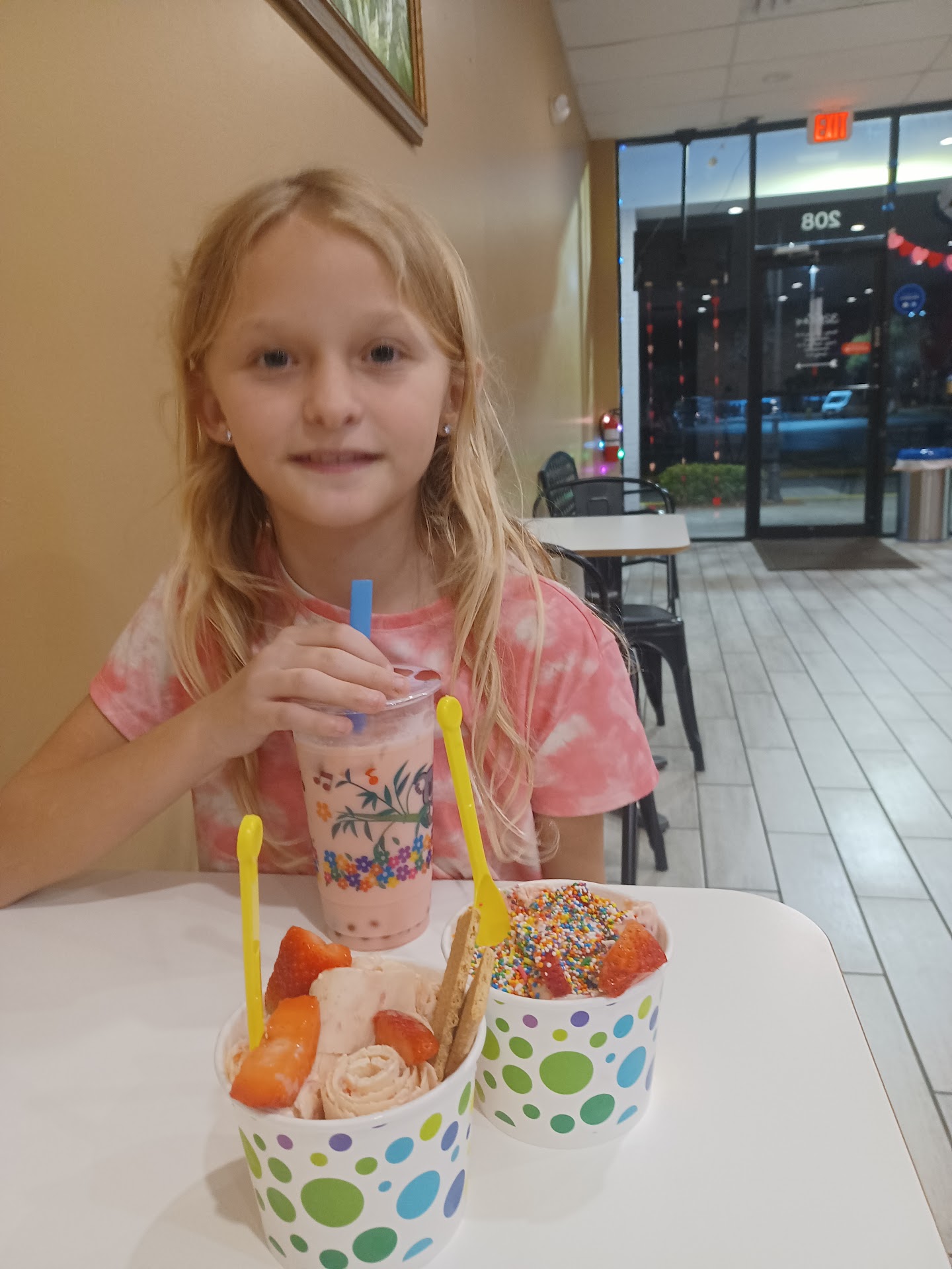 Hello!! Hope you’re doing well. First I would love any business to succeed.. First time and was not impressed. We had a hard time locating where it was because no lights were on outside for the signage. We went around the plaza a few times went to baskin Robbin’s asked them if you were still open they said yes around the back plaza.. we found it and was excited to try! First impressions .. no lights on to know you’re even open… No greeting when walking in. Takes so long to make the dish. Had No idea till after you pay and they ask you for your toppings do you find out that the bobas are extra. This should had been known at time of ordering. Should had been displayed at register.. instead it just says three free toppings.