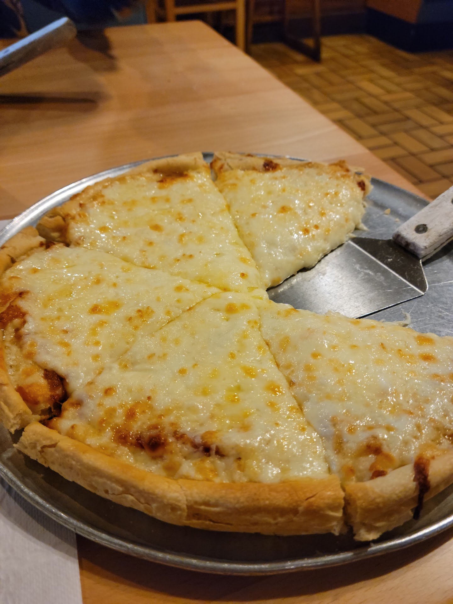 Today my server had zero tables. I stood there for 6 and 1/2 minutes. (Btw... Counted 5 people in the back talking and eating) She finally sat me. Before coming back to my table (which she probably Steps of Service would say that she should have gotten my drink order)...she continued to do her SECTION WORK!!! Filling parmesan, etc. So was 10 minutes before being properly greeted and in place in my drink order.