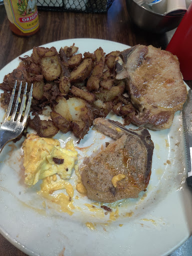 Read moreWe are new to the area and would like to not only start reviewing again but find a regular spot that we feel welcomed. Coming in we were greeted by Stanley who we found out was the owner. Very polite and inviting. From our observation he was familiar with the regulars and involved in the restaurant. We were seated promptly and had our drinks on the table within minutes. We would have preferred if they would've asked beforehand about our seating preference but not a deal breaker at all. Our waitress was patient with our indecisiveness and gave us all the time we needed to make a decision while checking in regularly to see if we were ready or needed any help. Our cups never went dry. When asking about items on the menu we were reassured if we received anything that we weren't satisfied with they would have no issue making it right or getting us something else. However, this was not needed. Our food came out rather quickly and did not disappoint. It smelled amazing and we forgot to snap pictures before digging in. We ordered the 2 eggs with two pork chops, homefries, and a biscuit for one meal. The 2 eggs with country fried steak, grits, and toast for the other. All tasted fresh. Everything was seasoned to please everyone. Enough to give it a great flavor but not too much for those who prefer less. My spouse added a dash of salt and pepper to the grits and I added a bit of hot sauce to my pork. The homefries and biscuit were definitely made from scratch, if not they fooled us, crispy around the edges, soft where it mattered and packed full of flavor. Pork chops were juicy and seasoned well. The steak was fried perfectly golden with a nice white pepper gravy. The grits could have come off a minute or two earlier but it did not ruin anything. My spouse ate almost every bite. We were checked on to make sure everything was to our liking and at the end of our meal we officially met the owner, Stanley. He came to make sure everything was okay and asked for any feedback. A great experience. For these large portions and great service our meal was only $42 before Tip (there is also a slight fee noted at the bottom of the menu for using a card instead of cash). Our only actual complaint was that we didn't have much privacy being placed out in the middle with booths all around and we received a couple straight stares and a few looks from various individuals throughout our meal. We are an interracial gay couple who is completely new to the area and that might be different from what the customers are accustomed to. It definitely looked like maybe a lot of locals. We will never know but nothing stopped the great experience we received from the...