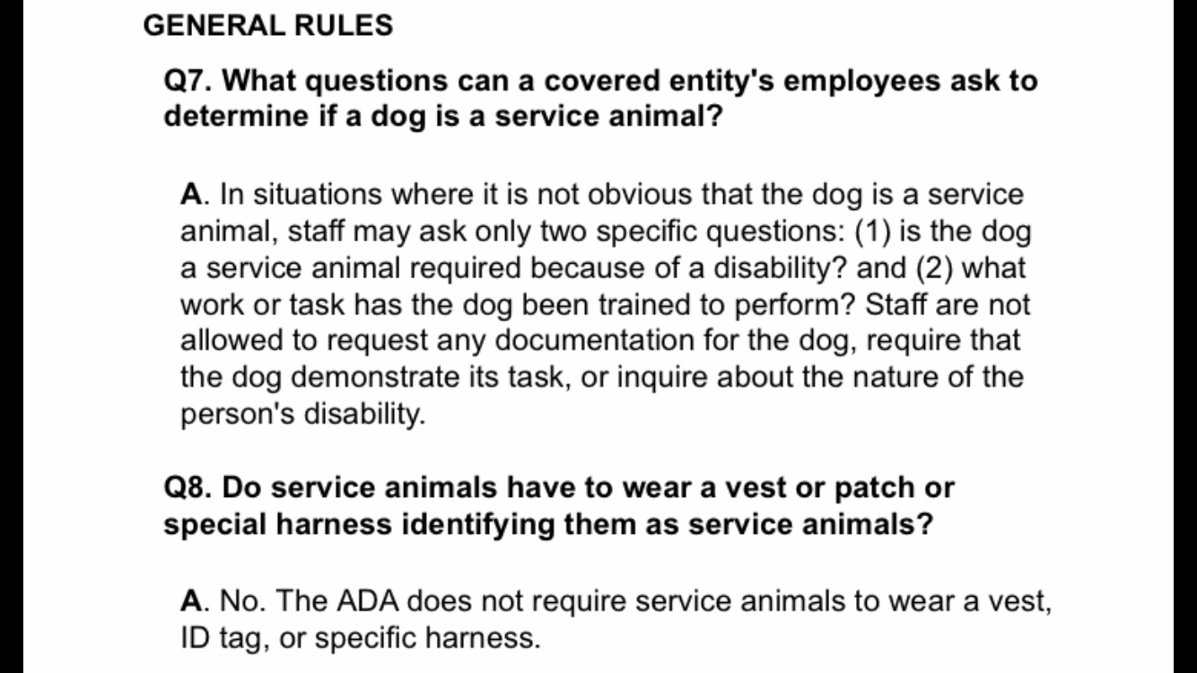 Read moreUnfortunately they are not well versed in ADA RULES & REGULATIONS, my service dog was under the table not making any fuss. When I informed the waitress that it is against government law to deny us service, she brought either the owner or manager, he wanted to see our permit. To which I told him to look up the ADA RULES & REGULATIONS, yet he insisted on seeing my permit. To which ADA states there’s no such thing to show as of the last printing, it only states that the animal should not be disruptive or aggressive. As a veteran I shouldn’t be denied access, or be made public. My dog is a Medical Alert dog. It’s the same thing as a person in a wheelchair. I don’t care what country you come from if you’re going to open a restaurant to the public in this country, You better educate yourself...