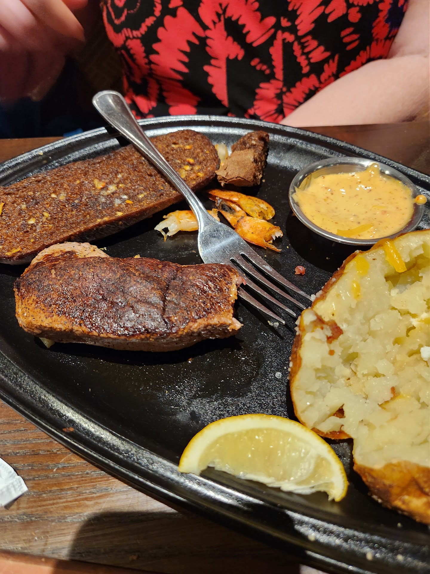 Read moreSuper interesting visit. Showed up at 12:25 on a Saturday for lunch. Ordered our appetizer and drinks. Got our bread and gave our order. Manager came over and said our appetizer "fell apart" and they had to make it again. 8 minutes later our main meals came out. About 5 minutes later our appetizer came out. To make things worse our server ordered a wrong meal, so now they had to remake it. When that came out, it was wrong again. Beyond frustrating. Server was incredibly friendly but just wasn't good. Empty plates, empty bread cutting board and drinks sat the entire time. Didn't clear the table until we asked for the check. We watched her walk circles on the floor without doing anything, yet couldn't take our empty drinks when she brought the new ones. Like I said she was incredibly nice, but seemed beyond flustered. I don't know if they were down servers or kitchen staff or both but man was it a mess. Its been years since I've visited an Outback and probably won't be back. Manager was going around and apologizing for issues, but it didn't seem like they provided the proper training to create a better situation for the customers. Lunch for 4 of us took over an hour and a half. I can deal with time issues because of lack of staffing, but when everything else is a mess the problems are deeper than improper staffing. Would not visit this...